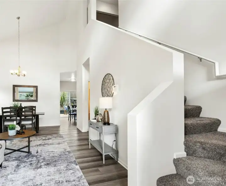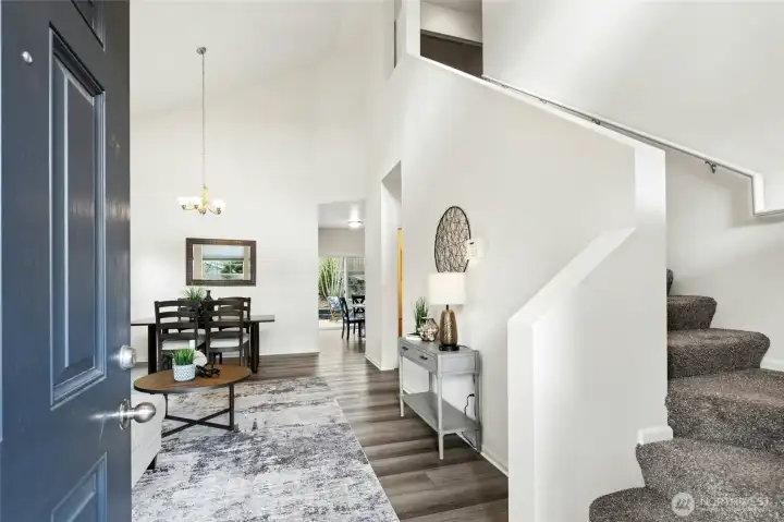 Want low electric bill? Yes, really. Welcome to this beautifully maintained 3BR, 2.5BA home in sought-after North Tapps Estates—where comfort, style, and efficiency come together. Equipped with $30,000 in solar panels (with transferable warranty), the previous owner has enjoyed little to no electricity costs—an incredible long-term savings advantage. Step inside to a dramatic two-story entry and vaulted ceilings that create an airy, inviting feel. The open-concept layout is perfect for everyday living and entertaining, featuring beautiful low-maintenance flooring, fresh paint, and a cozy gas fireplace in the family room just off the kitchen. All appliances are included for a seamless move-in experience. Upstairs, the spacious primary suite offers a large walk-in closet and a 5-piece ensuite bath. Two additional bedrooms share a full bath, providing flexibility for guests, home office, or hobbies. Enjoy low-maintenance landscaping. Ideally located between Lake Tapps and Lakeland Hills Town Center, you’re minutes from Lake Tapps, trails, shopping, dining, and top-rated Dieringer schools. This isn’t just a home, it’s a lifestyle upgrade with built-in savings. Don’t miss it. Pre-inspected for your peace of mind.
