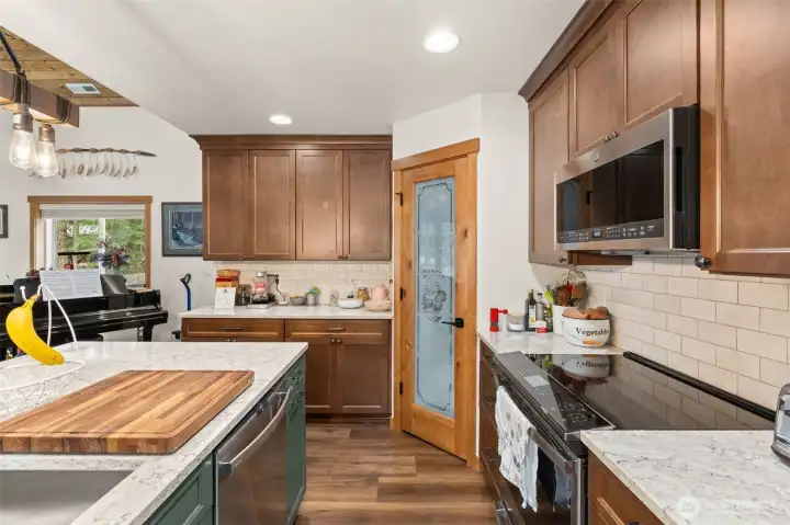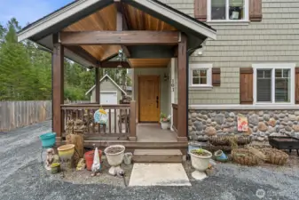 Nestled in a quiet cul-de-sac in the High Valley community, this custom-built 3 bed, 3 bath Craftsman home offers a rare blend of timeless design and Pacific Northwest serenity. Built in 2022 and surrounded by evergreens, the setting is an ideal escape. Thoughtfully constructed by the original owner, the home showcases exceptional craftsmanship throughout, including vaulted tongue-and-groove ceilings, solid wood doors and trim, and a generous pantry. The spacious kitchen is anchored by a stunning island with quartz countertops—perfect for gathering and entertaining. A rock and beam entry welcomes you, while a classic woodstove brings warmth and character to the living space. Outdoor living is equally considered, with a deep stamped-concrete covered deck, complete with a step-in hot tub—ideal for relaxing beneath the trees. A fully fenced yard adds privacy and function, and a fire pit creates an inviting space for evenings under the stars. The detached garage, designed in harmony with the home’s Craftsman aesthetic, offers flexible space for vehicles or recreation. Durable cement board siding, artfully combined with shake, board-and-batten, and stone accents, ensures lasting beauty with minimal maintenance. A quality heat pump and water heater provide modern comfort and efficiency year-round. Ideally located just minutes from White Pass Ski Area and Mount Rainier National Park, this is a rare opportunity to own a refined mountain retreat where luxury meets adventure.