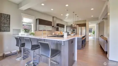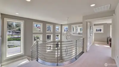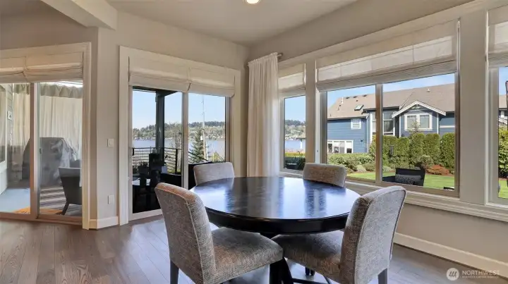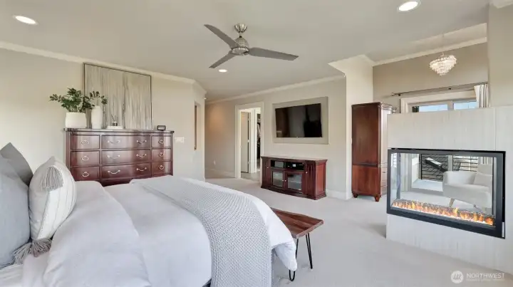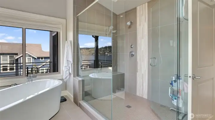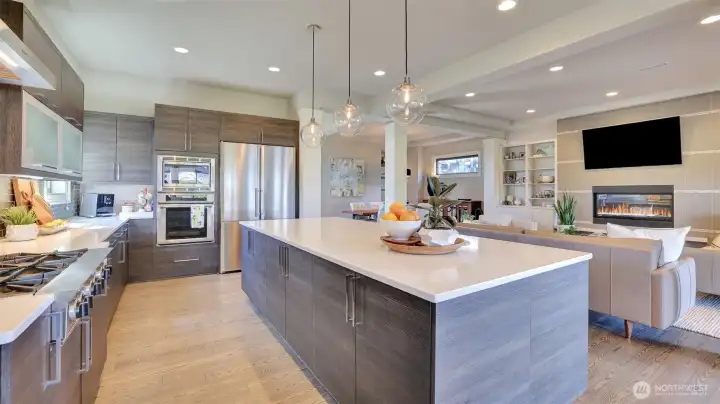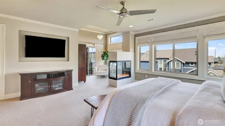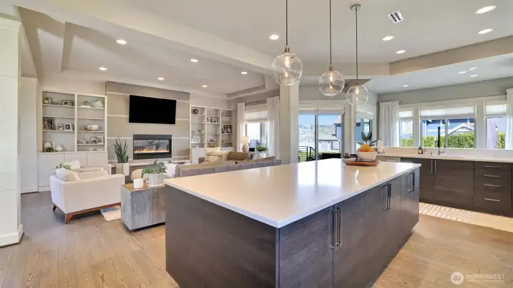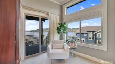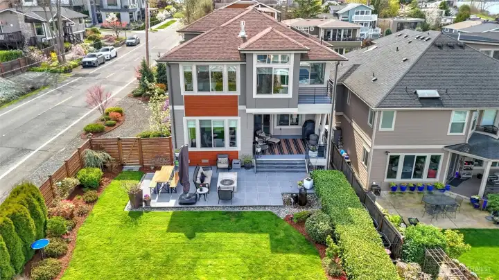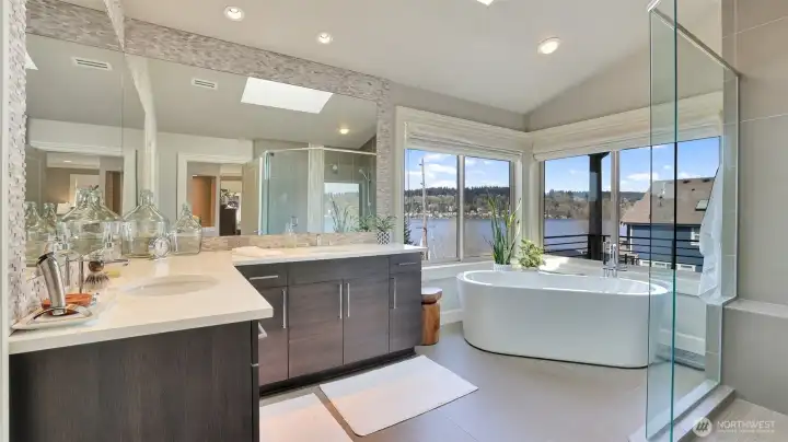 Perched above Lake Washington in historic Kennydale, this refined residence captures sweeping views of the lake, Mercer Island, and the Olympic Mountains—an ever-changing backdrop of sunrises, sailboats, and seasonal activity. Just a block from the expanding Eastrail and minutes to Bellevue, Seattle, SeaTac, and waterfront parks, the location delivers unmatched convenience and lifestyle. Inside, modern design meets elevated comfort with high ceilings, abundant natural light, automated lighting, upgraded venting, Milgard windows, and seamless indoor-outdoor flow. Dual sliding doors open to a covered patio with fireplace, fountain, outdoor curtains, and gas stub, creating a year-round entertaining space. The chef’s kitchen features a BlueStar 6-burner cooktop, Liebherr refrigerator, double Thermador ovens, Blomberg dishwasher, Hans Grohe fixtures, Blum hardware, and under-cabinet lighting. Smart-home amenities include Arlo cameras, Ring doorbell, Rachio irrigation, Alexa-controlled exterior lighting, and whole-home Wi-Fi access points. Additional highlights: built-in vacuum, hot/cold garage bib, washer/dryer, great-room TV mount, Gladiator wall system, two storage sheds, and a three-sided primary-suite fireplace. Two ensuite bedrooms complete this exceptional lake-view retreat.