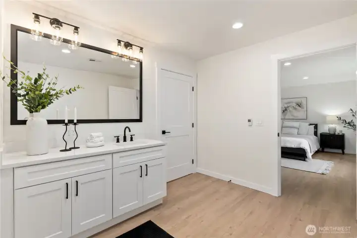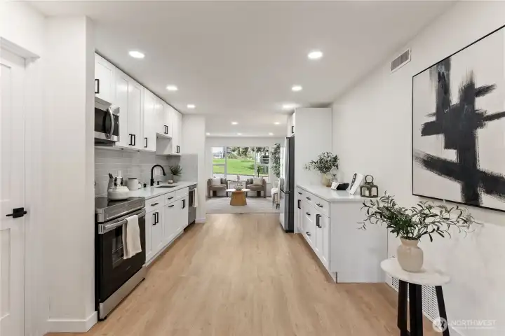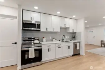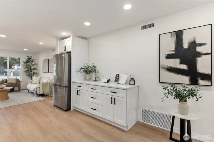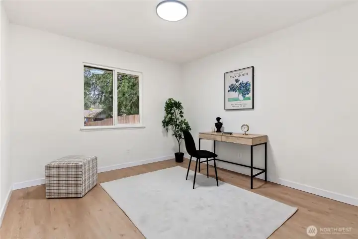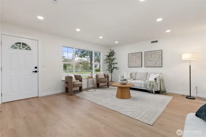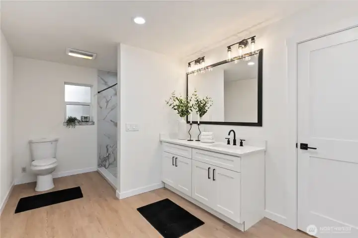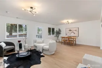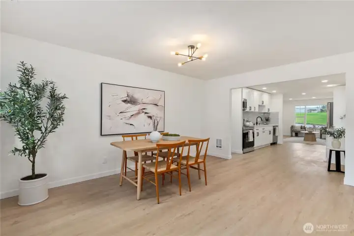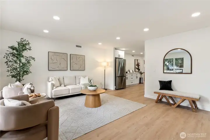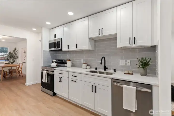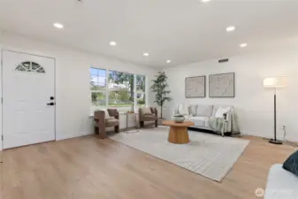Charming 1-story home with 3 bedrooms and 1.75 baths, offering 1,672 sq. ft. of comfortable living space. Updated and renovated throughout, this home features a modern kitchen with quartz countertops, sleek appliances, and abundant natural light. The spacious living room, cozy family room with an electric fireplace, and formal dining room create an inviting layout for everyday living and entertaining. The primary suite includes a private entrance, heated floors in the bathroom for added comfort, and ample closet space. Outdoors, enjoy the large deck and fully fenced yard—perfect for relaxing or hosting gatherings. A shed and room for RV or boat parking add extra convenience and versatility.