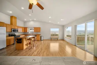 Adorable rambler showcasing sweeping river and valley views! This open-concept home features a spacious dining area and a warm, inviting living room with vaulted ceilings and a cozy gas fireplace. Offering 3 bedrooms plus a versatile office/den and 2 bathrooms, there’s plenty of room to live and work comfortably. Enjoy the fully fenced and irrigated yard, perfect for relaxing or entertaining, complete with an expansive deck, large storage shed, and easy-care, low-maintenance landscaping. An attached 2-car garage adds convenience to this move-in-ready home.