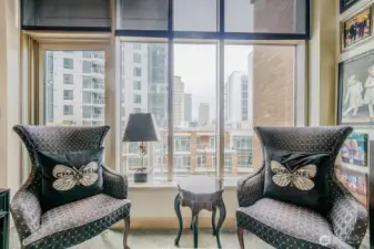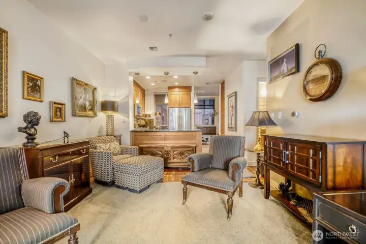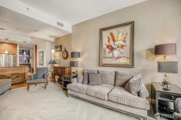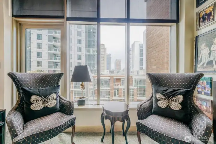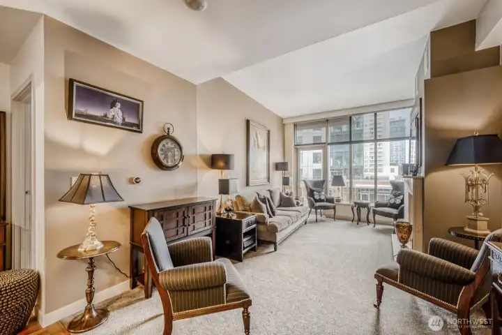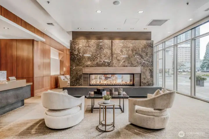 Experience the pinnacle of urban sophistication in this stunning Courtyard unit. This 1 bedroom features 9ft plus ceiling, hardwood floors, slab granite counters, stainless steel Kitchen Aid appliances, gas fireplace with marble mantel, California Closets, 5.1 wired surround sound, central A/C and remote controlled window coverings. Relish in Washington Square’s amenities – 24 hr concierge, updated fitness facility, spa, sauna & owner’s lounge. A walker’s paradise for work & play. One parking stall + storage. Steps from Amazon, Bellevue Square, and Downtown Park. Rental cap not met.