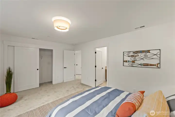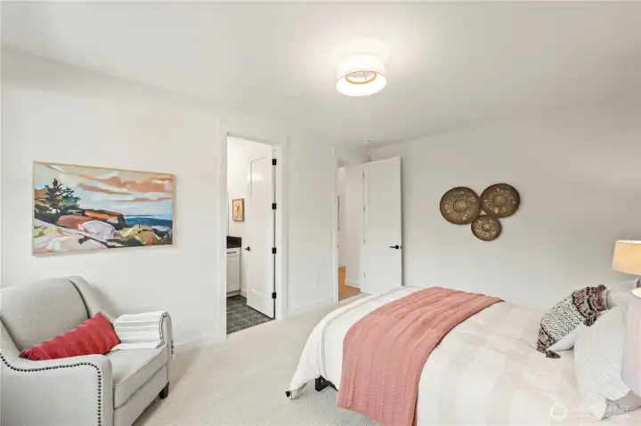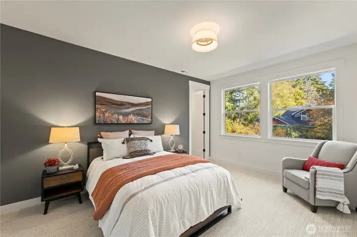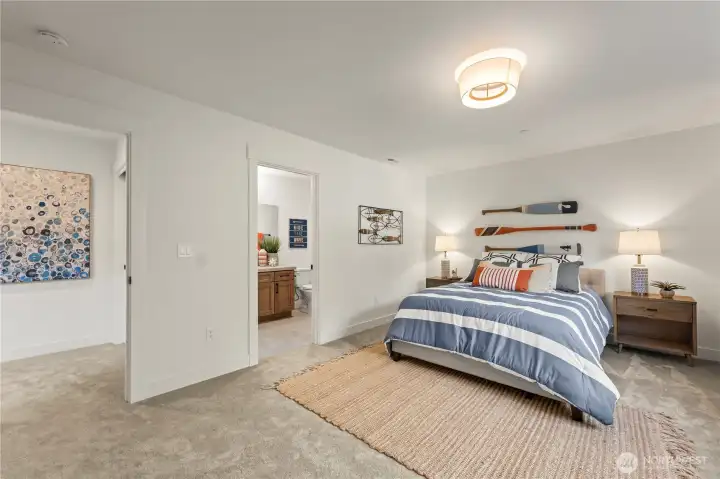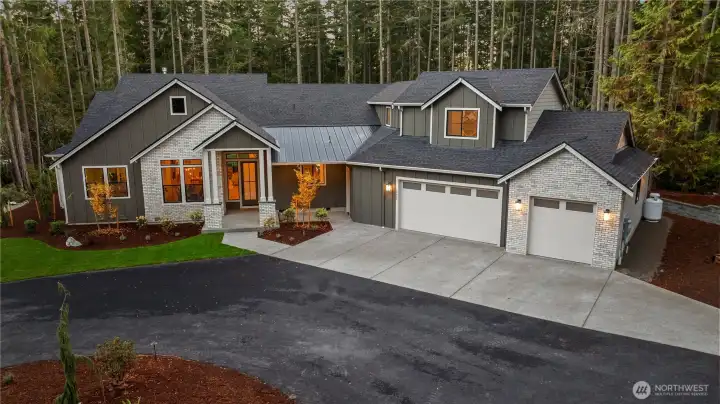 The PALISADE by GARRETTE HOMES! This distinctive open-concept model home welcomes you with a spacious entryway that makes a striking first impression, leading into a grand great room with custom masonry fireplace and tall 12-foot ceiling. The expansive, chef-inspired kitchen features high-end Thermador stainless steel appliances and boasts the largest kitchen island we’ve ever included in a floor plan. A spacious covered patio with outdoor fireplace creates the perfect setting for year-round Pacific Northwest outdoor enjoyment. The main-level primary suite features its own private covered patio and connects to a luxurious, spa-inspired en suite bathroom. The walk-in closet conveniently flows into the laundry room for a seamless, functional layout. Upstairs, a spacious bedroom with its own en suite bathroom offers the ideal setup for guests or private living space. Photos are of the exact property for sale. Leaseback may be required. Brokers must accompany their clients at initial visit for full compensation.