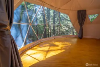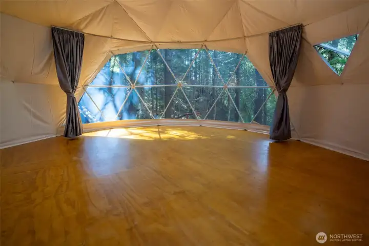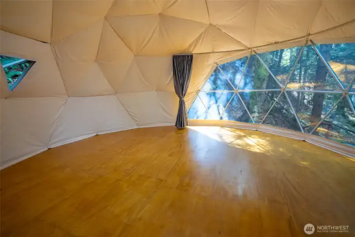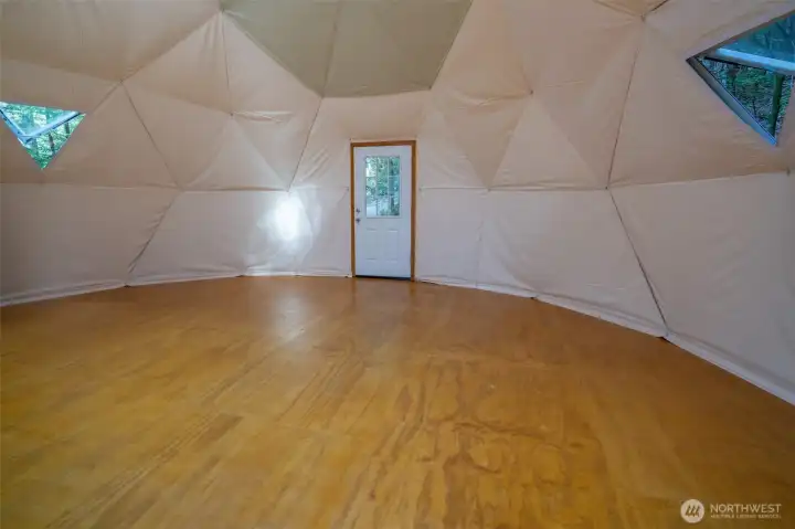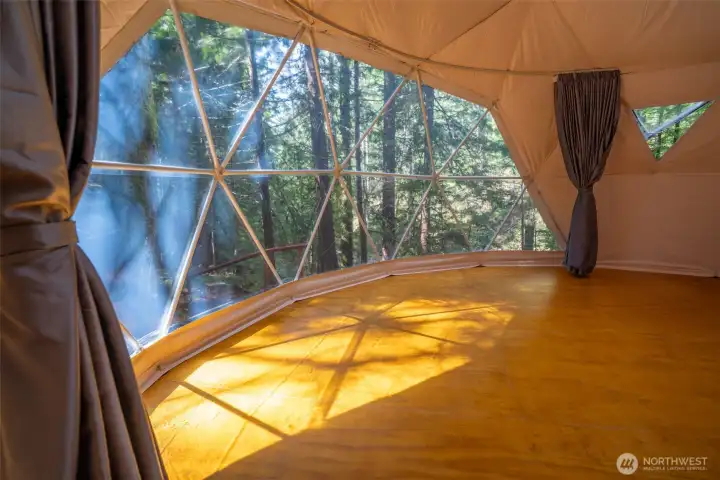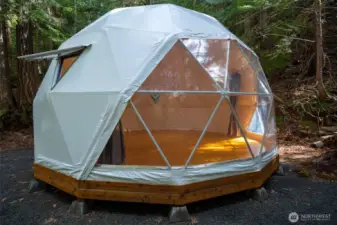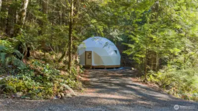 Set on over 5 acres of fully private land on Dow Mountain, this off-grid geodesic dome offers an incredible retreat to disconnect and recharge. Surrounded by towering evergreens, lush ferns, and striking moss-covered boulders, the setting feels truly secluded—with no neighbors in sight, save for the occasional owl passing through. Located within a gated area, the property offers an added sense of privacy and security. The 27-foot dome spans approximately 530 square feet, with ample potential to add a loft and expand the living space.With much of the groundwork already complete, this is your opportunity to bring your vision to life. Expansive panoramic windows, operable triangle windows, and overhead ceiling windows flood the interior with natural light, seamlessly blending indoor and outdoor living while showcasing serene forest views in every direction. Enjoy access to nearby Lake Cushman amenities, including a private community park with restrooms, showers, a boat launch, and more—all just a short distance away. Whether you're looking for a cozy cabin escape, a modern minimalist retreat, or a one-of-a-kind getaway this property is more than just land—it’s an experience waiting to be shaped. Your gateway to the beauty and adventure of the Olympic Peninsula starts here!