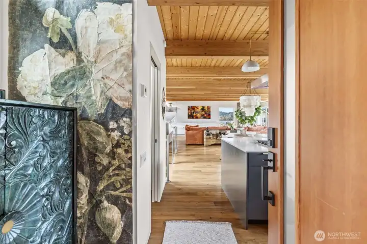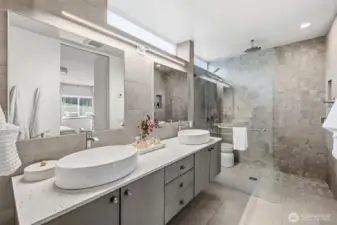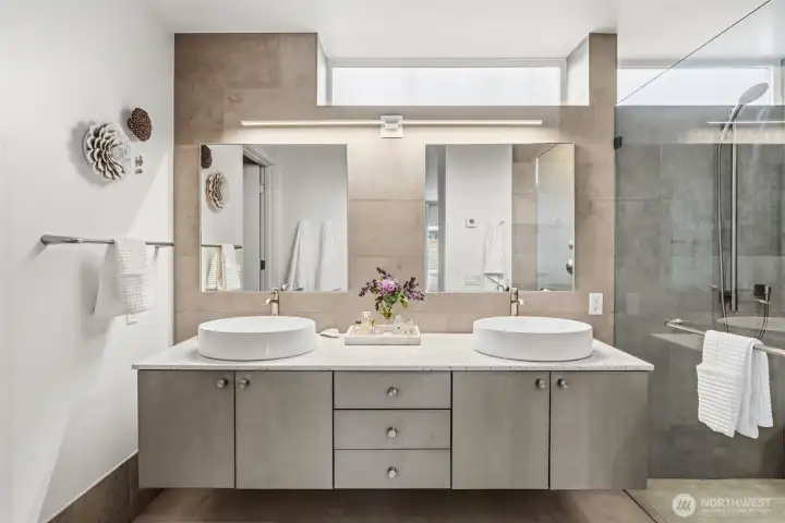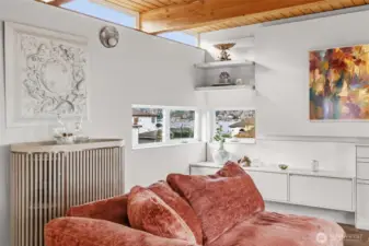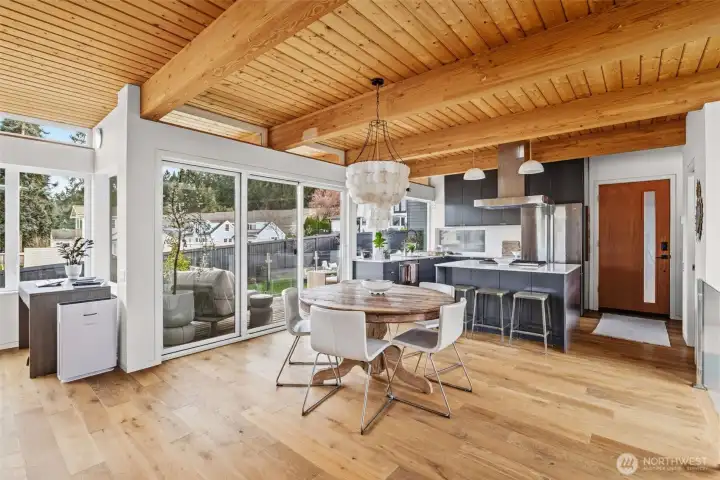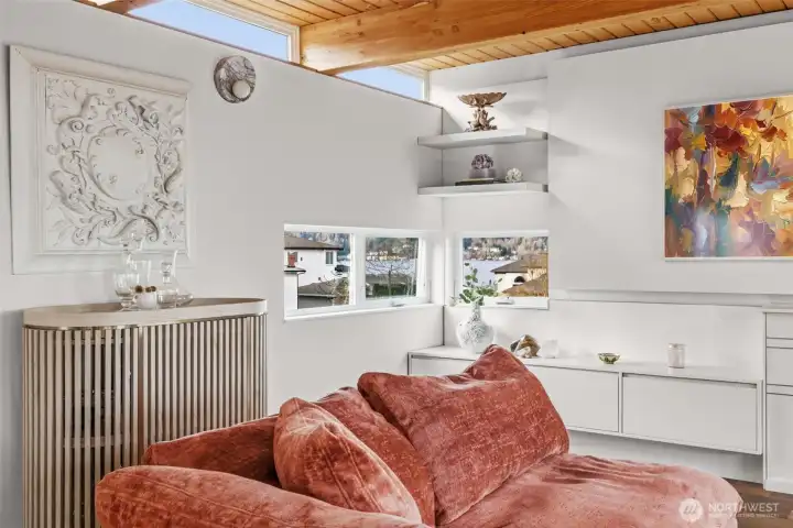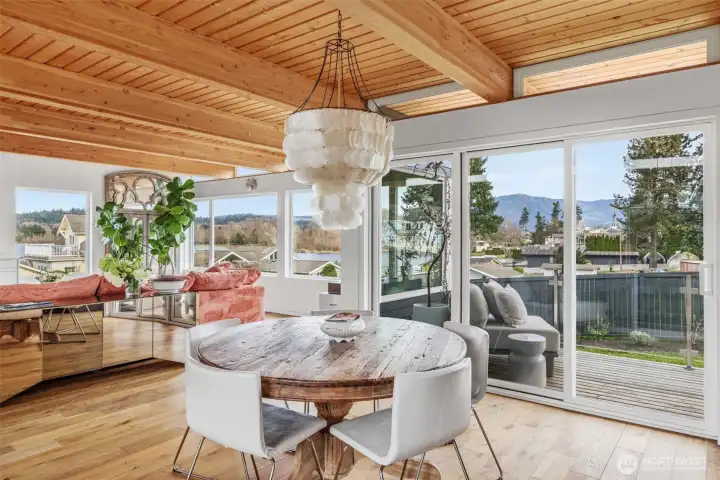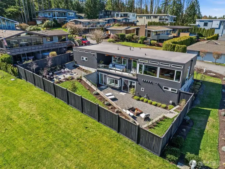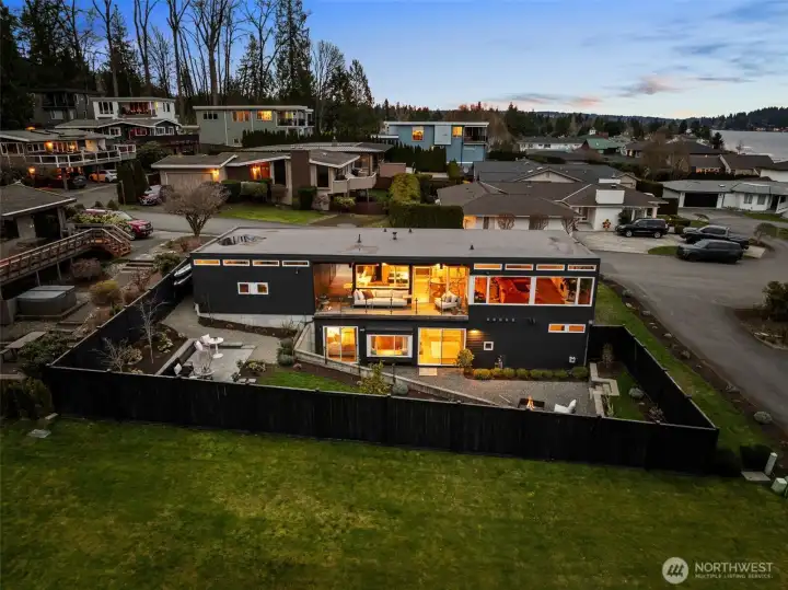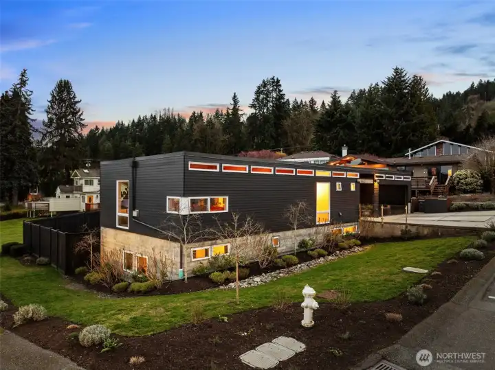 Welcome to Sammamish View Retreat, a serene, light-filled modern home overlooking Lake Sammamish with shared beach and moorage! Expansive picture windows and walls of glass capture breathtaking water and mountain views while filling the home with natural light year-round, creating a warm, uplifting atmosphere. Designed with a stunning great room layout, the home offers open, flowing living with clean lines, warm wood accents, and seamless indoor-outdoor connection. A large glass door opens to a covered view deck—perfect for enjoying morning sunrises, evening sunsets, and peaceful moments surrounded by nature. The thoughtfully designed layout lives larger than its footprint, with private bedroom spaces and additional living areas that open directly to beautifully landscaped outdoor settings. Multiple patios and a fire pit create inviting spaces to relax and unwind. Extensive, thoughtfully curated landscaping. This home truly lives like a retreat—offering the feel of a vacation getaway in every season. Enjoy summer days on the water with private beach access, moorage, paddleboarding, or simply taking in the views. In cooler months, the home remains cozy and connected to the outdoors, with radiant heat and abundant natural light throughout. High-end finishes include stone surfaces, custom tile, and a finished garage with heat/AC for flexible use. Ideally located just minutes to Issaquah, and an easy commute to Seattle, while still enjoying a quiet, nature-filled setting.