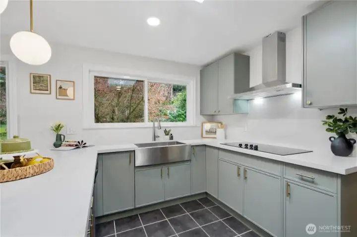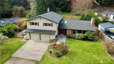 A RARE opportunity to own a private 0.43-acre urban oasis with Thornton Creek flowing through your backyard—offering year-round beauty and tranquility. Surrounded by mature trees and a spacious lawn, it feels like YOUR OWN PARK, with ever-changing scenery and abundant wildlife. Inside, expansive windows and skylights fill the home with natural light and frame serene creek views. The thoughtful main floor layout blends formal and casual living, with the family room opening to the outdoor retreat and a den for flex use. Upstairs features 4 bedrooms, including a spacious primary suite with walk-in closet. Tastefully updated in 2026, the home features a stunning brand-new kitchen, refreshed bathrooms and laundry, new flooring, fresh interior paint, and modern plumbing and lighting fixtures—offering a move-in ready experience with timeless appeal. Additional highlights include a 2-car garage and an energy-efficient heat pump with A/C. Ideally located near Northgate’s shopping, dining, and transit hub—with quick access to I-5 Express, just 5 minutes to the nearest Link station, and 15 minutes to downtown. Homes like this are truly hard to find—where nature, space, and everyday living come together in perfect harmony.