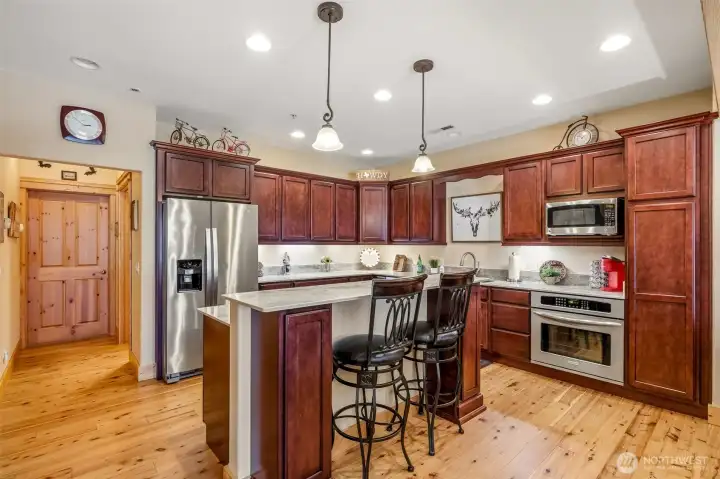 Luxury Alpine Retreat in the heart of Leavenworth! Indulge in an upscale condo with the best mountain views and location Leavenworth has to offer. This investment condo makes around $50,000 in rental income and comes completely furnished and includes future reservations! Start making money the day you close. Inside, the open floor plan features high-end finishes, quart countertops and newer appliances ideal for relaxing or entertaining. Unwind by the cozy fireplace or step out onto your private front balcony to take in the charming alpine surroundings. Both bedrooms are designed for rest and privacy, with the main bedroom having an outside deck for fresh mountain air. The back deck is also equipped with a pulley-system to pull up luggage and heavy groceries. A private garage is also included with plenty of storage for all your toys. Whether you're sipping local wine, exploring nearby trails, or enjoying the festive downtown atmosphere, this luxury condo is your perfect home base for experiencing the best of Leavenworth. Adventure awaits from this perfect investment opportunity!