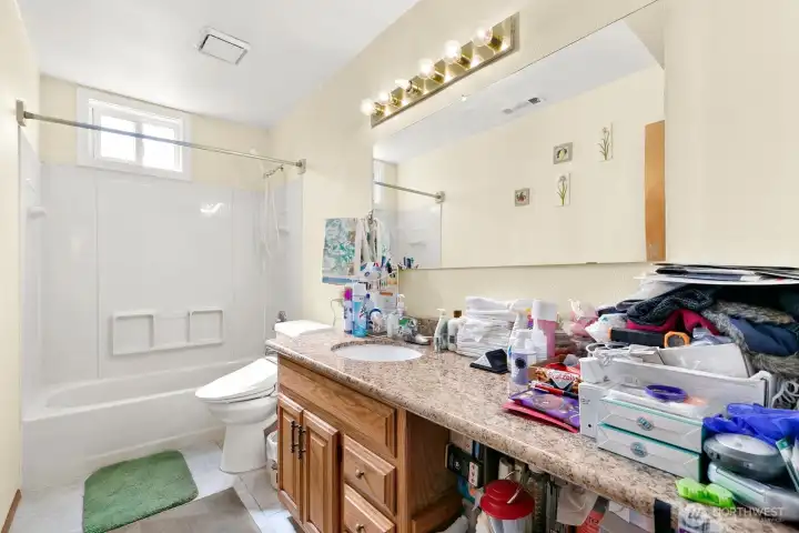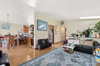 Beautiful split level located in the Beacon Hill community. Home has 3 bedrooms and 3 full baths. Upper level features living room with gas fireplace, spacious kitchen, dining room with access to sun drenched deck. Entertainment sized deck provides great views of Lake Washington and Mt. Rainier great for friends and family. Master bedroom with walk-in closet and master bathroom. Lower level has a huge family/rec room and full bath. Two car garage, gas heat, double paned windows, upgrades to the bathroom, kitchen and stairs and much more. Hardwood floors and skylights. A must see! Near light rail station, bus lines. Short distance to schools, shops, restaurants.