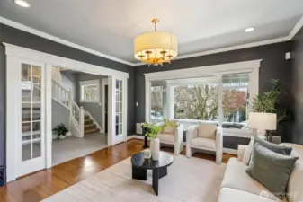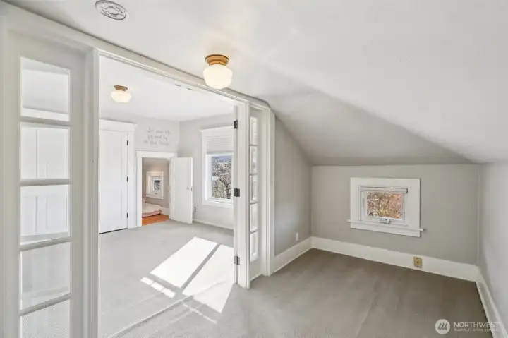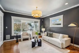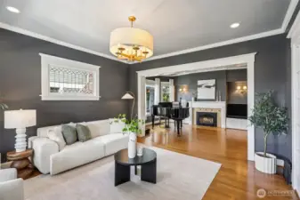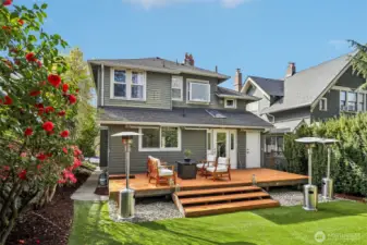 This hard-working 1909 craftsman with modern day upgrades checks so many boxes. The large, rebuilt front porch provides private perch for NW summer sunsets. A spacious entry opens to three gracious rooms, 2 side-by-side living spaces, one with a gas fireplace, and a formal dining room. The updated, eat-in kitchen walks out level to new deck equipped with professional grade electric heaters overhead and level turf yard providing a low maintenance outdoor space ready for entertaining. A powder room is discreetly tucked away, just off the kitchen. Additional updates include heated floors in all tiled spaces, plumbed in Sonos sound system throughout entire home, fully renovated basement with French drain and updated bathroom, perfect for guests. The top floor boasts three sizable bedrooms and two bathrooms, including an en suite to the primary. Fabulous neighbors and a block away from the Madrona shopping and eating district plus easy walk to Lake Washington and Madrona Beach. Single-car, attached garage.