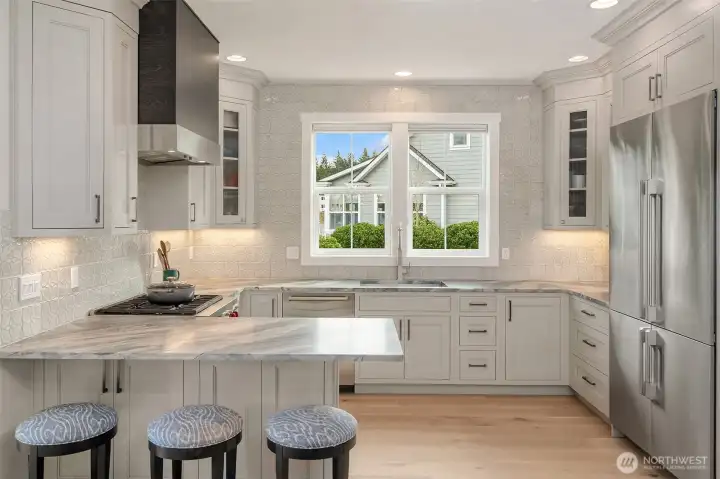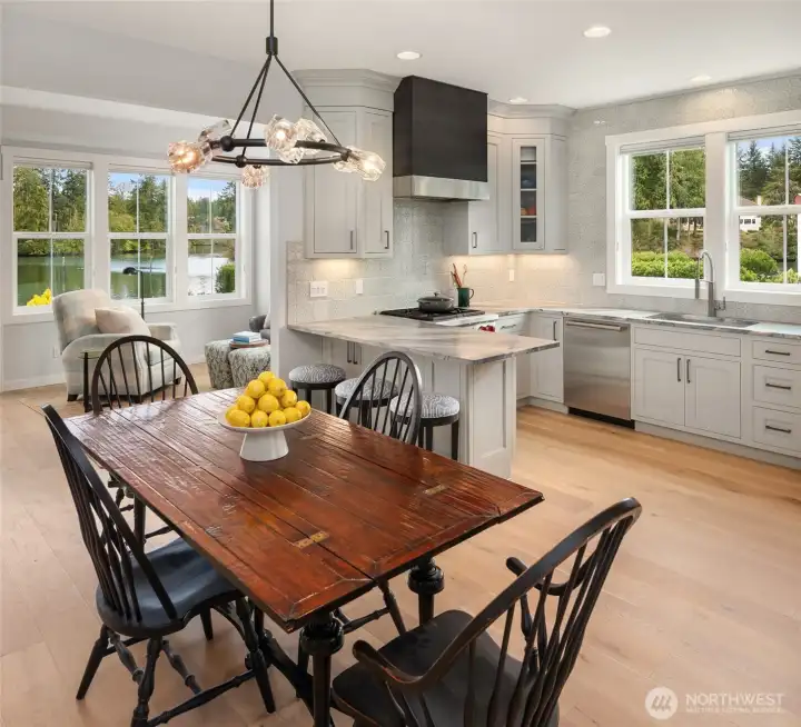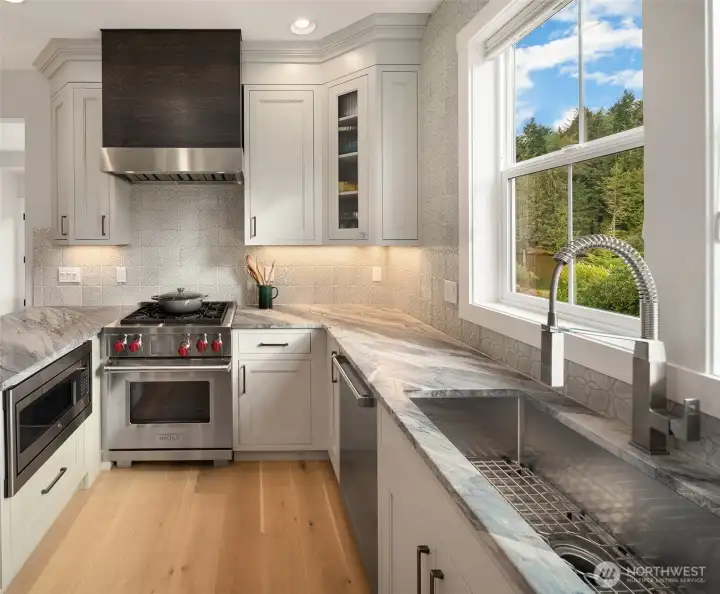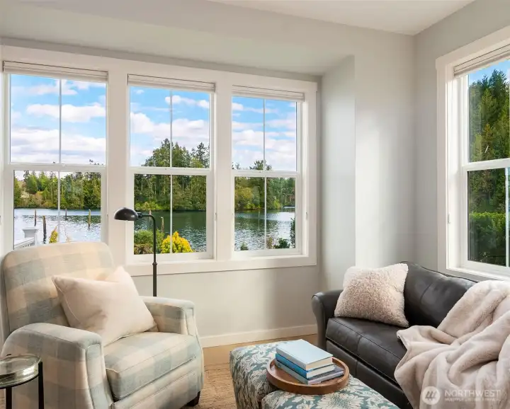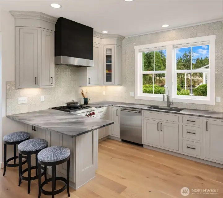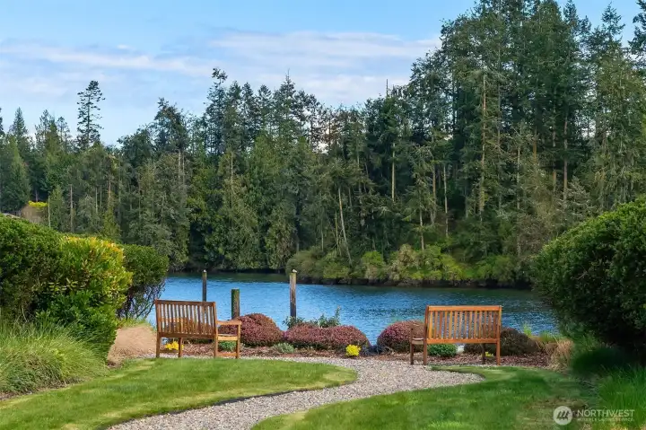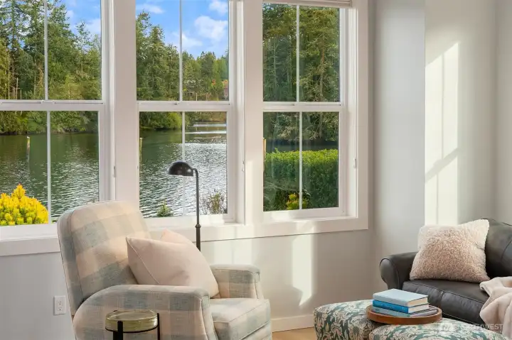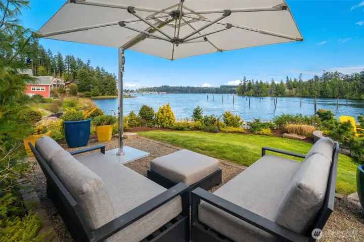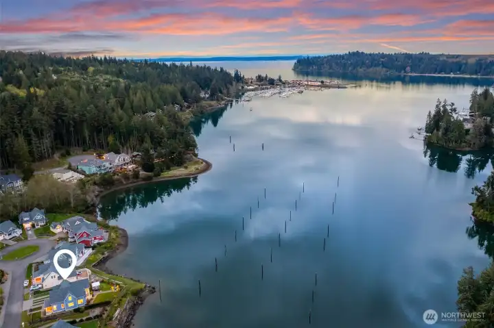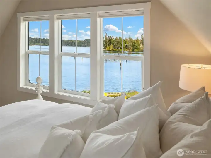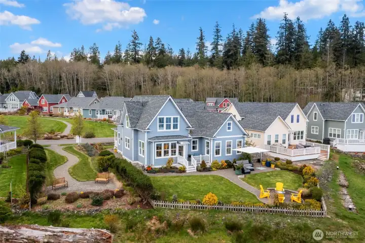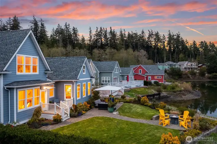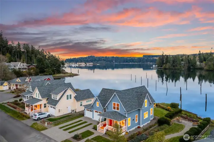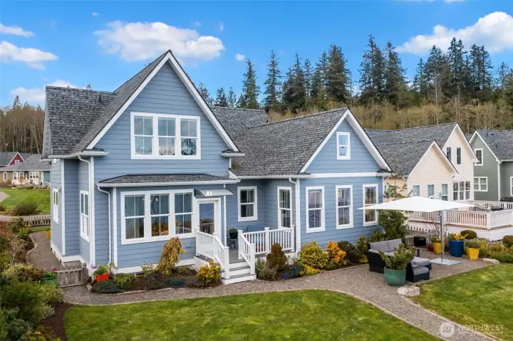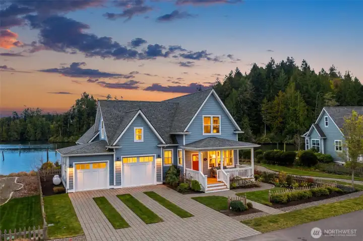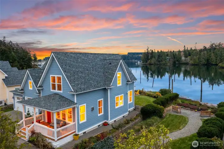 Sited on the premier waterfront homesite in Ludlow Cove Cottages, this impeccable 2025 remodeled Craftsman captures the essence of coastal charm. Set on the neighborhood’s largest waterfront lot, the expansive, fenced, and landscaped yard frames sweeping 180-degree views of Ludlow Bay, from the marina to the protected eagle islands. Inside, the main level showcases white oak engineered hardwood floors and lacquered trim throughout, embodying elevated beach house design. The front living room centers around a gas fireplace wrapped in handcrafted Pratt & Larson tile. The kitchen is appointed with top-tier appliances, Ijen Blue leathered quartzite, custom cabinetry, and artisan tilework. The waterside living area flows seamlessly to the deck, with a conveniently placed beverage refrigerator for effortless entertaining. The main-level primary suite offers tranquil water views with more quartzite and handcrafted tile in the primary bath. Upstairs, the waterfront guest room captures one of the home’s most breathtaking views and shares a full bath with an additional guest room overlooking the park. A generous flex space serves as a fourth bedroom or media room, complemented by a sizeable, finished bonus room ideal for a gym or playroom. Located in one of the region’s rare waterfront communities with full utilities: gigabit internet, community water, and sewer. Offered nearly fully furnished, this turnkey opportunity is perfect as a primary residence or lock-and-leave retreat.