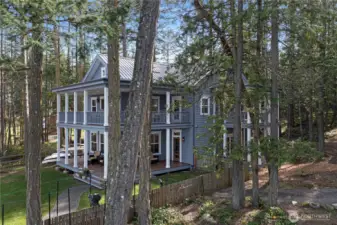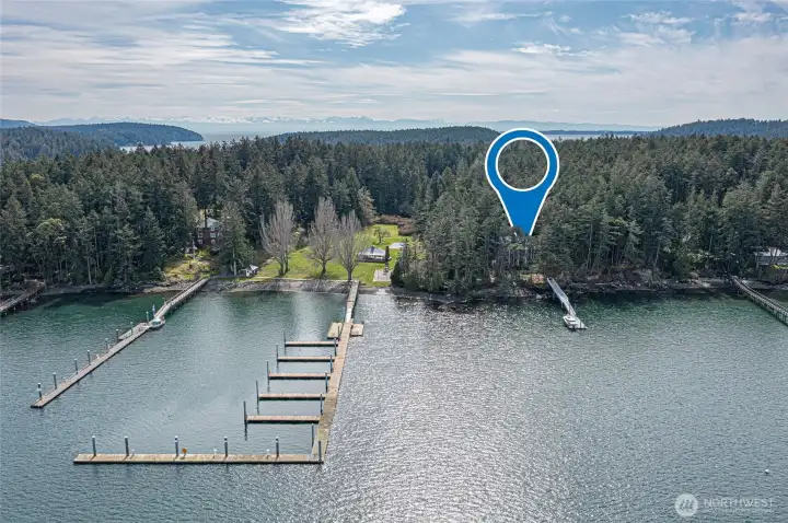 Gracefully designed with classic symmetry, stately columns & refined architectural detail, this home evokes the charm of a bygone era while offering modern luxury in a breathtaking island setting on 2 lots. Gourmet kitchen blends form & function, high-end appliances, a monolithic island, abundance of cabinets, a walk-in pantry & sleek stone. Seamless flow into formal & casual gathering areas. Primary suite is a true sanctuary framed by tranquil views, a luxe bath, banks of closets & direct access to the wraparound porches. Every element of this remarkable retreat reflects thoughtful design & uncompromising quality. An ensuite retreat offers comfort/privacy with its own private lanai, while a charming finished attic provides extra space for guests. Also, beautifully restored 1920s cottage serves as a delightful guest haven with its own kitchen, bed/bath + an artist’s studio; perfect space for creativity, crafts, games & gathering. Lots 1 & 2 share a private dock located on Lot 1, offering easy waterfront access, Lot 2 provides ample space for the potential development of an additional residence. The estate unfolds into beautiful, lush grounds, covered verandas and sun-drenched terraces invite you to relax & take in the peaceful surroundings of the San Juan Islands, this rare offering combines New Orleans grace with PNW splendor—just a short boat ride or drive to the charm, marina & dining of Roche Harbor. A truly exceptional opportunity to own a one-of-a-kind legacy property.