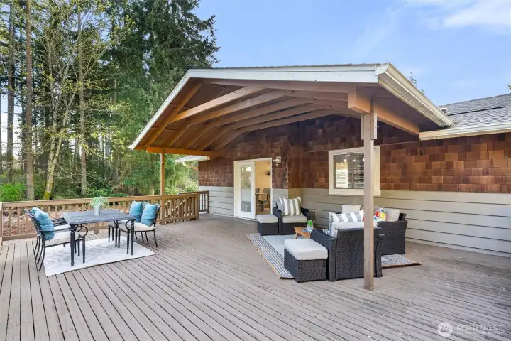 Versatile property with standout shop and flexible living! The main home offers 2 beds/2 baths, plus a private-entry 1 bed/1 bath mother-in-law, ideal for guests or income potential. Enjoy peaceful deck views overlooking mature trees, creating a serene, secluded feel. The detached shop is a dream setup with a car lift, 60-gallon compressor, half bath, and dedicated office/workroom; perfect for hobbyists, mechanics, or home-based business needs. Major updates include new roof (2024), new electrical panel, full PEX re-pipe, new furnace (2026), and whole-house generator hookup. A rare combination of privacy, functionality, and opportunity!