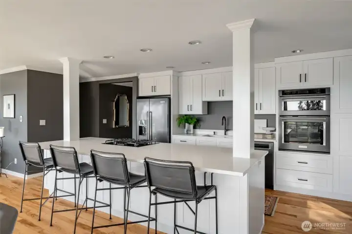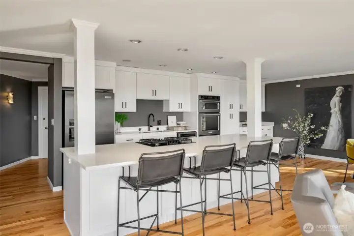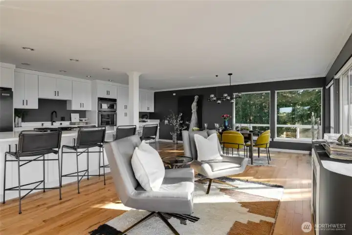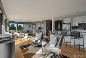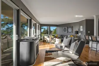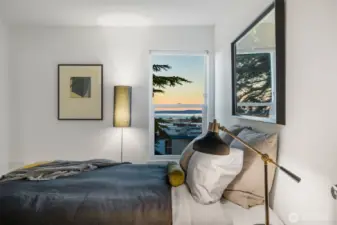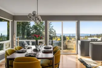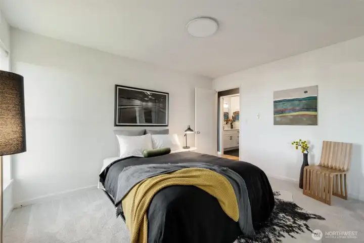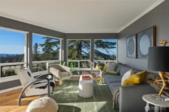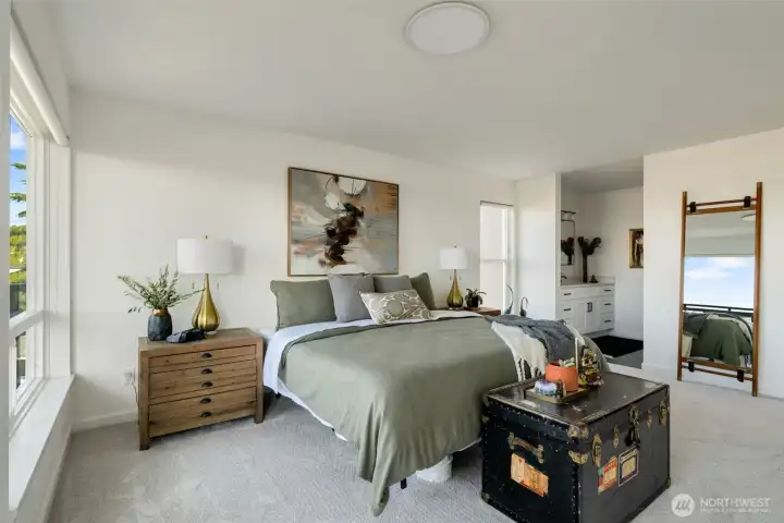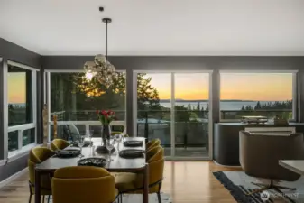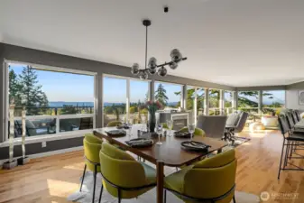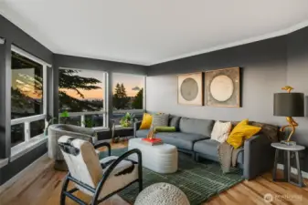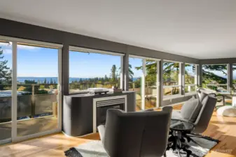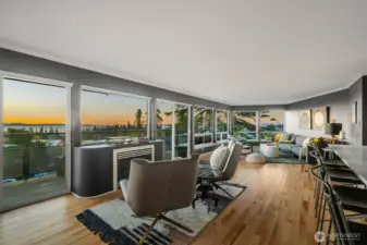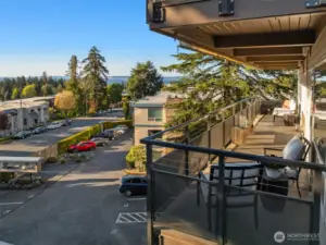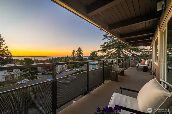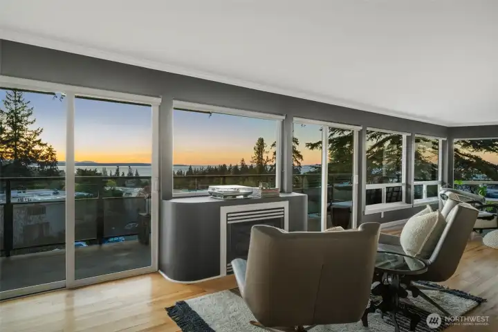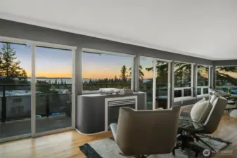 Unmatched, sweeping Sound, ferry, and mountain views from this stunning one-level condo in downtown Edmonds. Floor-to-ceiling windows fill the home with natural light and showcase breathtaking sunsets and ever-changing marine activity. This bright and airy residence offers two spacious bedrooms and two beautifully remodeled bathrooms. A stunning kitchen remodel w/ quartz countertops, gas cooktop & endless storage. Enjoy fresh paint throughout, new carpet, & updated fixtures. Cozy up by the fireplace or unwind on your spacious private deck, savoring sunsets and watching ferries glide across the Sound. Beautiful, well maintained grounds and outdoor swimming pool. Major updates include new siding, decks, roof and windows. New plumbing throughout. Secured building with elevator. Ideally located just minutes from Edmonds' vibrant shops, dining, theater, and the waterfront. Pacific NW living at its finest. Come enjoy!