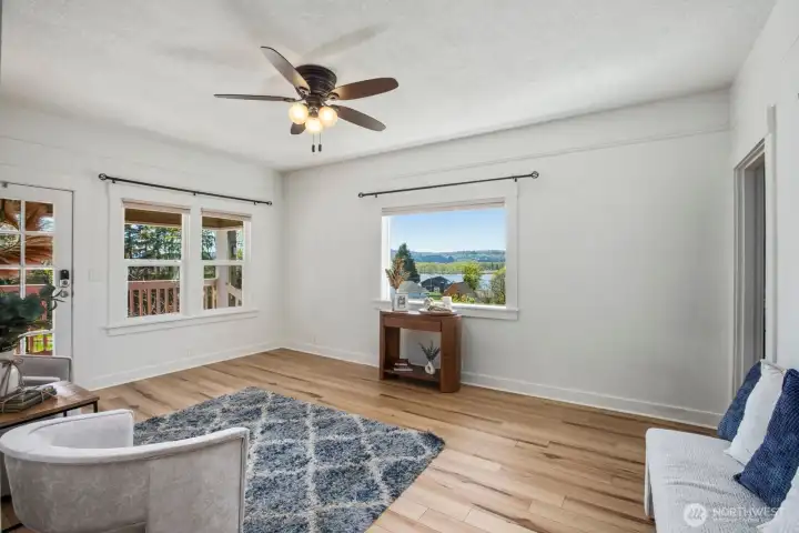 RIVERFRONT PROPERTY!! Welcome to this charming 2 bed /1 bath home with beautiful river views! Upstairs offers the kitchen, dining room, living room, and two spacious bedrooms w/ a bathroom. The finished basement offers great flexibility for a bonus room, extra living space, home office, or hobby area. Step outside and enjoy the covered patio and deck, perfect for relaxing, entertaining, or taking in the scenery year-round. With inviting spaces inside and out, this home offers comfort, function, and a setting you’ll love. Great location in the heart of Kalama! Walking distance to local shops and dining. Come see today!