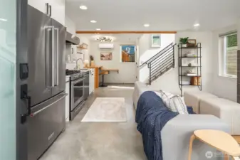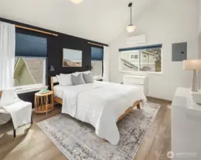 Maple Leaf standalone cottage built 2019 by Ashworth Homes - modern finishes and a layout that just works. Tucked off the main street, the main level features concrete floors, a gas range and fireplace, quartz counters and custom hickory built-in that doubles as a standing desk - warm, functional, and beautifully crafted. Enjoy outdoor living with a fully fenced private patio and garden space. Upstairs, tall windows pour light into the stairwell before opening into a stunning bedroom with vaulted ceilings, walk-in closet, and a full bath. At golden hour, the bedroom glows. Tankless water heater, ductless mini-splits, washer/dryer, custom blinds and designated parking with EV charging hook-up. No HOA, no rental restrictions - perfect as a primary residence or investment property for short-term or long-term rentals. Minutes from Green Lake, PCC, Amazing cafes and restaurants and freeways for commuting. The condo alternative you've been waiting for!