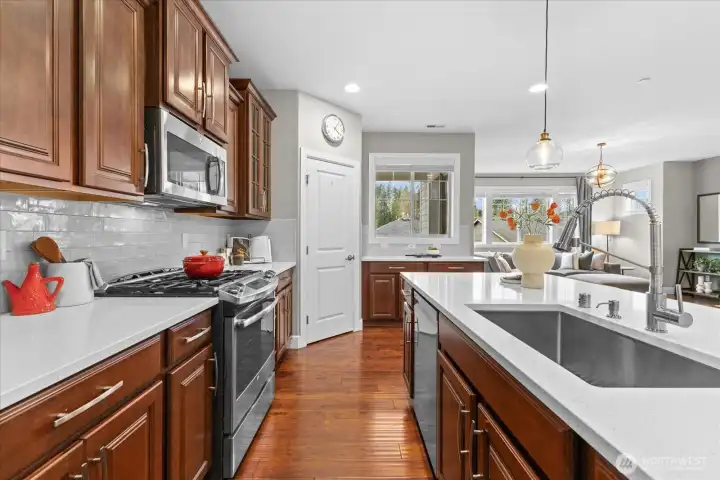 Better-than-new, stand-alone home in Bothell designed for the way you live today. With 4 bedrooms, 3 baths, and an open-concept layout, this home blends comfort and functionality with ease. At the center, a generous kitchen island creates the perfect gathering space, flowing seamlessly to a private backyard with a deck and covered gazebo—ideal for entertaining or quiet evenings at home. Upstairs, the vaulted primary suite offers a light-filled retreat with a walk-in closet. Thoughtful updates include stainless steel appliances, granite countertops, hardwood floors, and brand-new carpet and paint throughout. A 2-car attached garage and prime location near downtown Bothell, with convenient access to the Eastside and Seattle, complete the package. Move-in ready and made to be enjoyed.