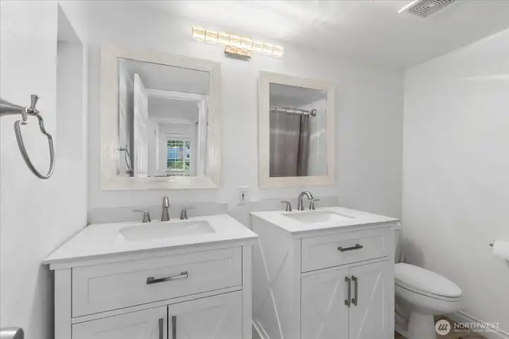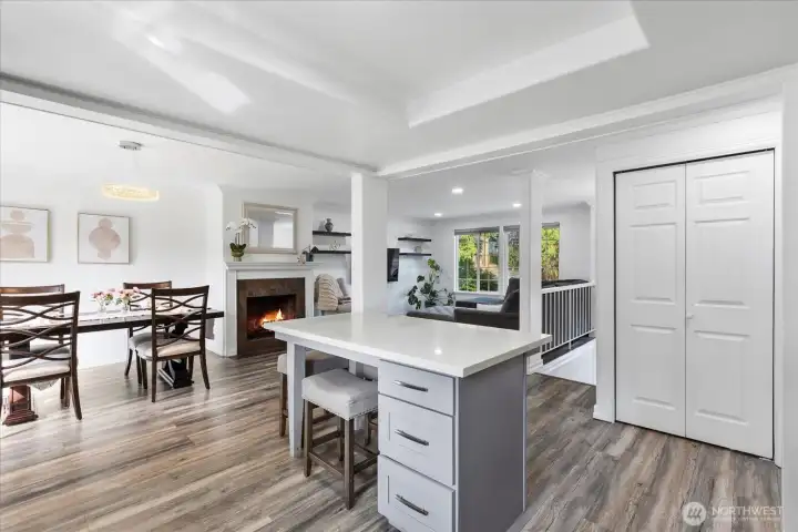 This beautifully updated split-entry home in the Finn Hill neighborhood is truly move-in ready! With 5 bedrooms and 2.75 baths, there is plenty of space to live, work, and entertain. Upstairs, enjoy fully remodeled kitchen with quartz counters and island seating. The stylish and functional kitchen opens to large dining area and spacious living room, complete with wood fireplace. This level further boasts 3 large bedrooms, including primary with ensuite. Downstairs features two additional bedrooms, full bath, and 2nd spacious living with its own separate entrance-ideal for guests, multi-generational living. This home offers perfect indoor/outdoor living with 2 decks plus an 8493 sq ft fully fenced yard. Other features include new garage door, remodeled bathroom, heat pump with AC, RV parking, and a storage shed in the backyard. Located in the highly regarded Lake Washington School District and close to everything Finn Hill has to offer. So many great restaurants and parks! This home combines comfort, flexibility and a fantastic location.