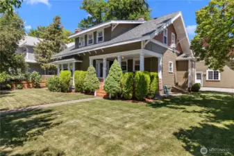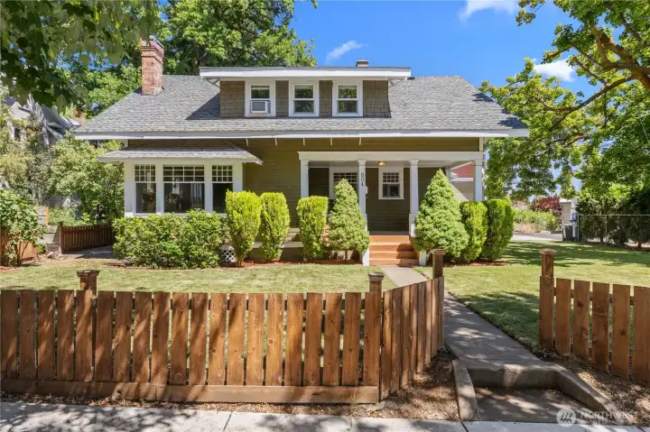 Charming Craftsman-style property with additional income opportunity in the Historic University District. The main home offers 3 bedrooms, 2 bathrooms, and 2,044 sq ft, featuring beautiful hardwood floors, a spacious open living and family room with a cozy gas fireplace, a separate dining room, and a functional rear-entry sun/mud room. All bedrooms are located upstairs, with a full bathroom on each level, and an inviting front porch perfect for relaxing.A key highlight of this property is the detached, fully insulated, finished, and heated double garage (525 sq ft), designed to match the home’s historic character. Above the garage is a fully equipped ADU studio with its own kitchen, laundry, and bathroom, ideal for rental income, extended living, or guests.The property offers excellent storage with a partially finished basement (300 sq ft), attic storage (150 sq ft), and additional space in the garage. The exterior features two custom-built garden sheds (120 sq ft each), mature landscaping, a well-maintained lawn, automated sprinkler system, and cedar fencing for privacy.A rare opportunity to own a character-filled property with flexible living and income potential in a prime location, ready for immediate occupancy.