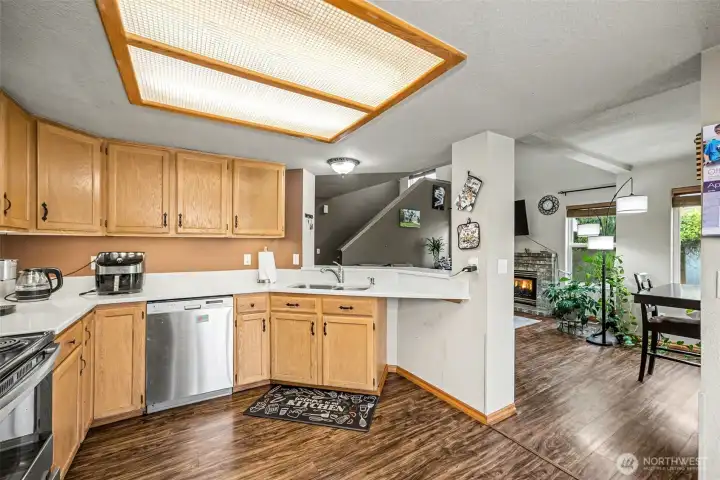 Welcome to this beautifully maintained home in the desirable Jackson Farm community! This 3-bedroom, 2.5-bath residence offers a convenient commute to JBLM and is close to Wonderwood and Rainier Vista parks, golf, and more. Enjoy a private backyard with no neighbors behind, perfect for relaxing or entertaining. The kitchen features quartz countertops and stainless steel appliances, opening to a cozy living area with vaulted ceilings and a charming brick gas fireplace. The spacious primary suite includes its own bathroom for added comfort. A well-cared-for home that blends convenience, privacy, and style—don’t miss this opportunity!