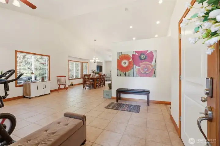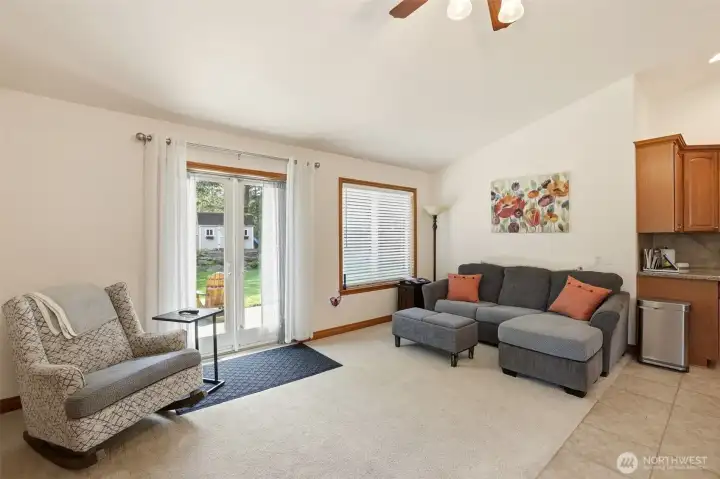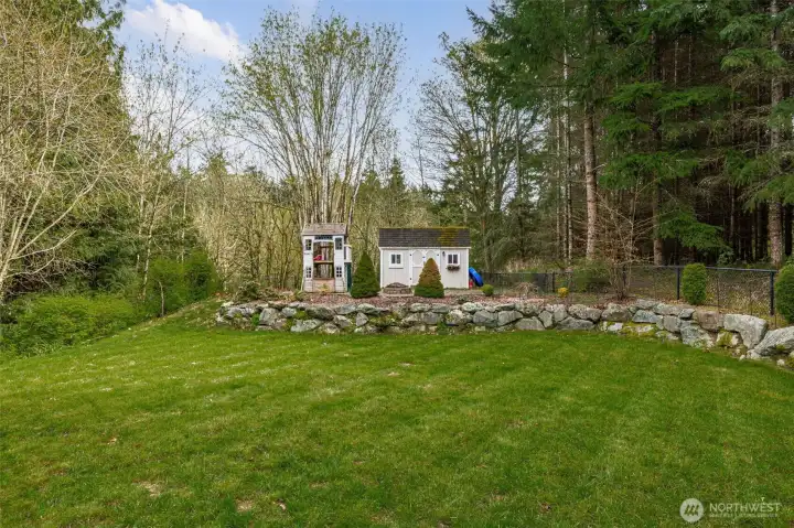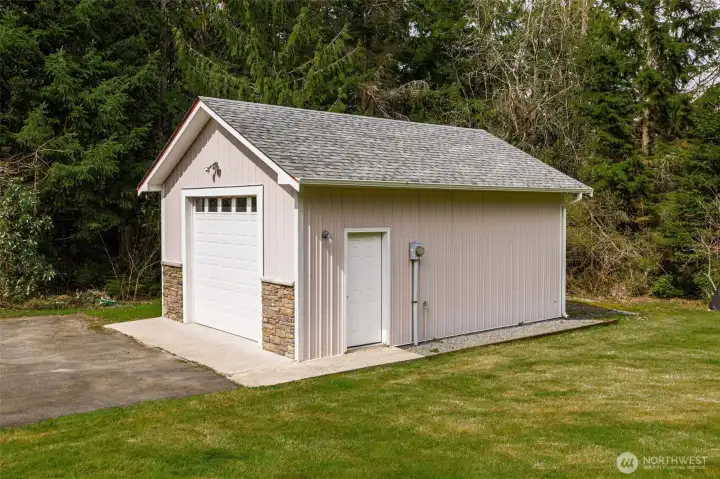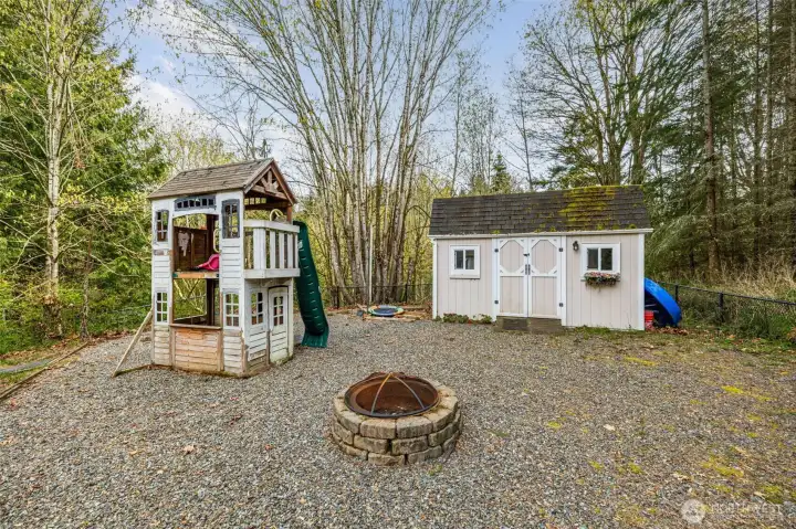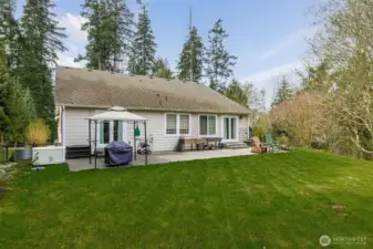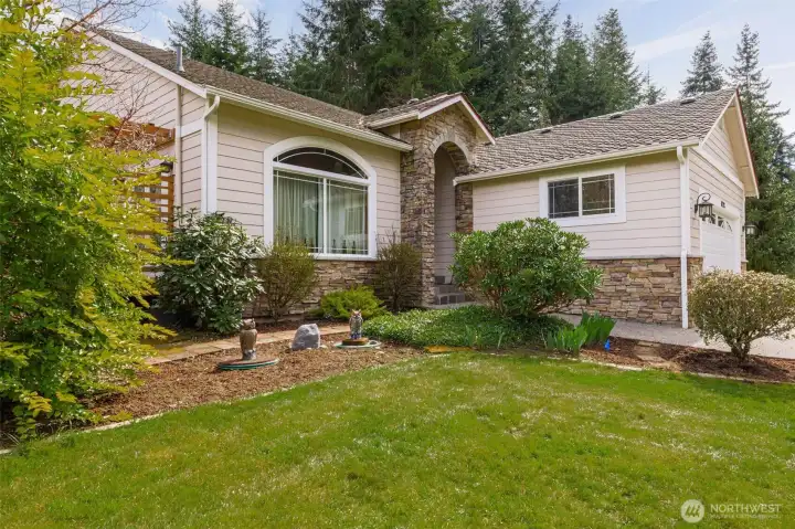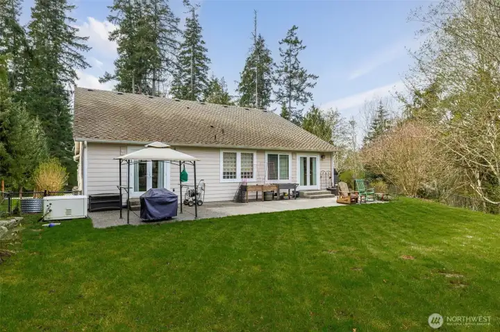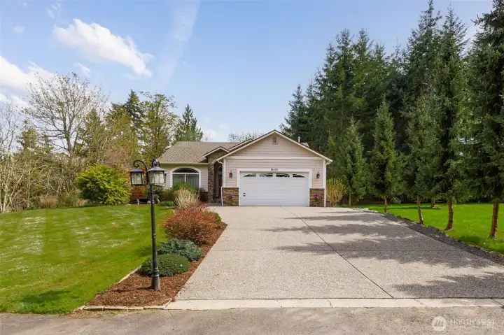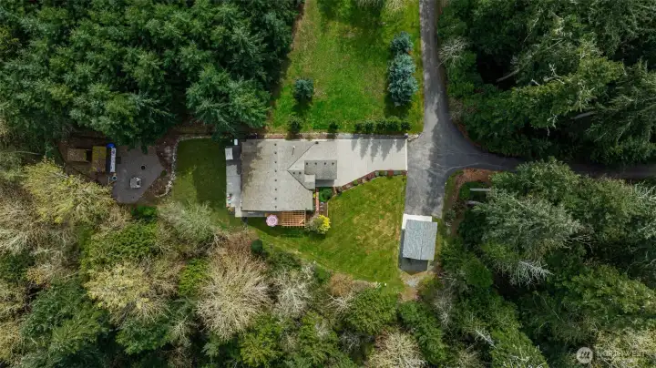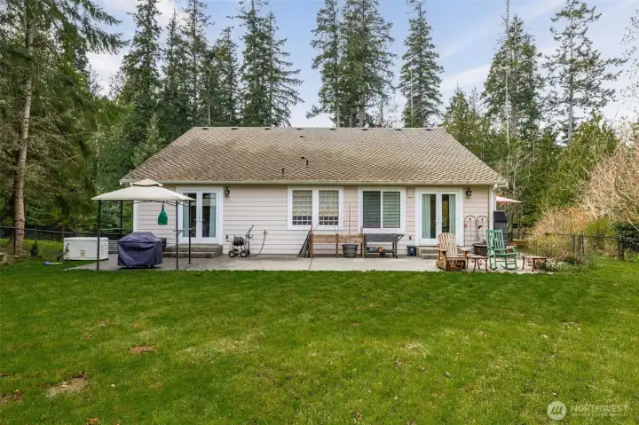 Beautiful, immaculately maintained home on 3.8 acres in a private community with no HOA. This single level residence features vaulted ceilings, radiant heat, gorgeous tile flooring, wood-wrapped windows, in home vacuum system and custom blinds throughout. The open kitchen offers granite countertops and stainless steel appliances, perfect for everyday living and entertaining. The spacious primary suite includes a 5-piece bath, walk-in closet, and french doors leading to the patio. Additional features include a utility room with sink and plumbing for a future half bath, a 50-year Presidential roof, and a generac generator. Enjoy outdoor living with a large deck, patio, and fire pit area, all surrounded by mature landscaping. The property also includes a detached structure with power and large attic space for additional storage, perfect for a hobbyist or home office, also includes an equipment shed, and an impressive shop. A rare combination of privacy, quality, and functionality. All within just a few short minutes to Kayak Point and the Beautiful Puget Sound. Home is a 4 bedroom approved septic.