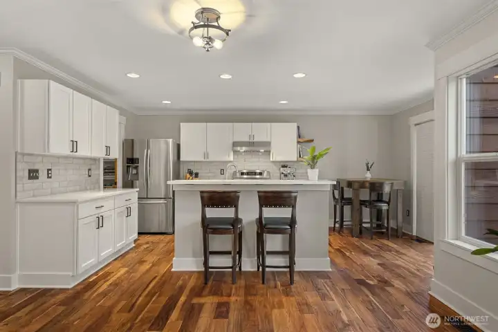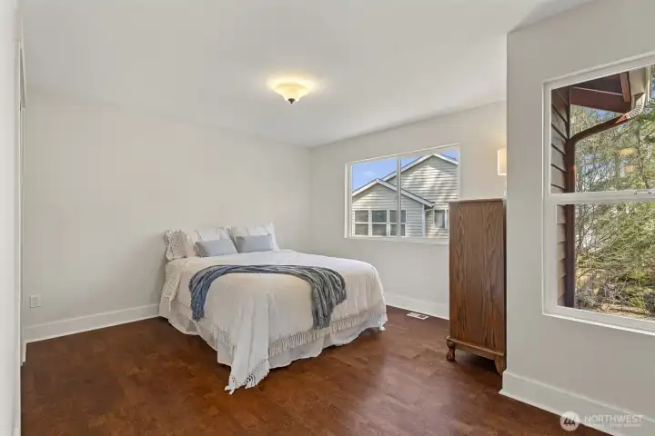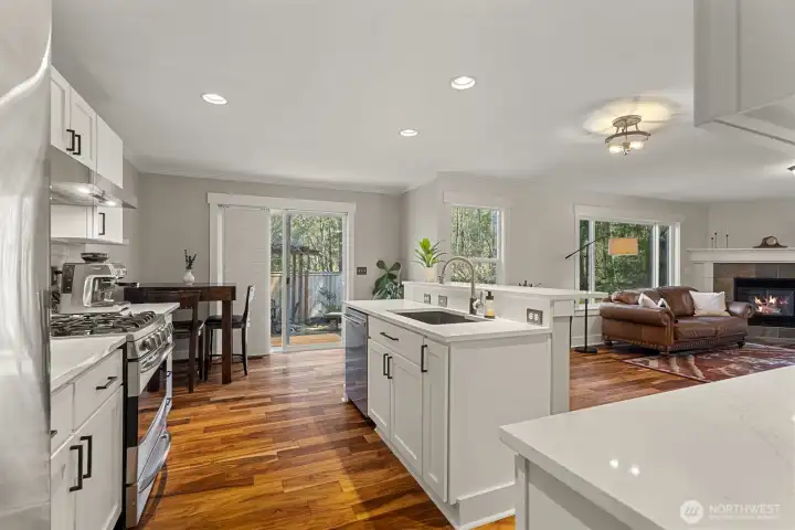 Standout Snoqualmie Ridge gem. First time on the market! Upgraded and move-in ready. This quality home sits on a greenbelt lot on a quiet cul-de-sac. Centrally located within walking distance to shops, parks, dining, Cascade View Elementary, and more. Thoughtful upgrades shine throughout with acacia wood floors on both levels, crown molding, wide trim and solid knotty alder doors with bronze hardware. New 50-year roof installed in 2023 with a transferable warranty. Updated chef’s kitchen features quartz counters and excellent workspace. Cozy gas fireplace adds warmth and charm. Great floor plan with 4 bedrooms plus a bonus room. Spacious primary suite includes wooded views, remodeled bath, and walk-in closet. The Greenbelt lot offers peaceful wooded views and privacy. Relax or entertain on the Montana slate patio. Ample garden space. Two-car garage with ample driveway parking. Prized Snoqualmie Valley schools. Quick I-90 access makes commuting a breeze. Welcome home!