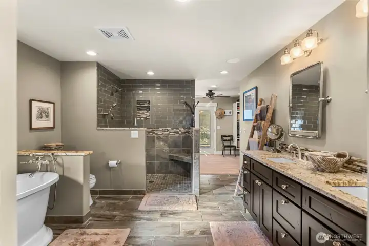 One of a kind daylight rambler located in the desirable Briarwood neighborhood, offering 3,680 sq ft of beautifully updated living space and breathtaking panoramic views of the Wenatchee Valley and Cascade Mountains. Ideally situated just minutes from the Wenatchee Golf & Country Club, this home combines convenience with a peaceful, private setting. The open concept main level is designed for both comfort and entertaining, featuring a spacious kitchen, living, and dining area filled with natural light. The kitchen showcases granite countertops, a gas cooktop, and custom Bagdon cabinetry, seamlessly flowing into the inviting living room with a cozy wood-burning fireplace. The generously sized primary suite provides a true retreat, complete with a luxurious ensuite bath, standalone soaking tub, and an expansive walk-in closet with convenient in-unit washer and dryer. The lower level expands the home’s versatility with two additional bedrooms, a full bath, a family room, and a private studio featuring its own kitchen, bathroom, and washer/dryer ideal for guests or multi-generational living. Step outside to your own private oasis with a boutique-style gunite pool/hot tub, and elegant water feature, surrounded by mature landscaping that enhances the home’s serene and secluded feel. Also enjoy a three car garage and additional driveway space for extra parking. This exceptional property is truly a must see!