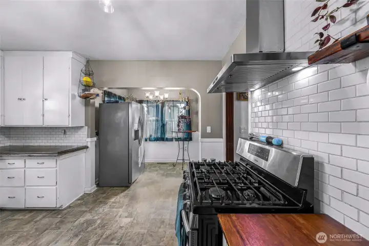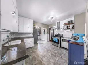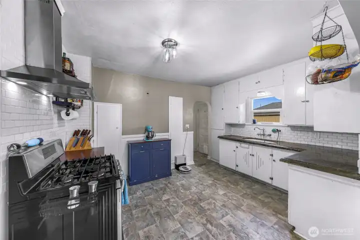 Charming vintage home in the heart of Burlington, blending timeless character with thoughtful updates. Classic features include hardwood floors, coved ceilings, and original woodwork throughout. Light-filled living room with gas fireplace opens to a cheerful eat-in kitchen featuring polished concrete countertops, stainless steel appliances, and gas range. Main-level bedroom with two additional bedrooms upstairs. Spacious utility room offers flexible use as a mudroom, pantry, or home office. Enjoy a large backyard with patio—ideal for entertaining. Detached 420 sq ft garage/shop, wired for 220, and gated RV/boat parking. Major recent updates include roof, windows, and furnace. Prime location near downtown, parks, cafés, and shopping.
