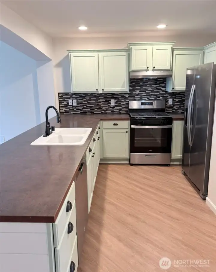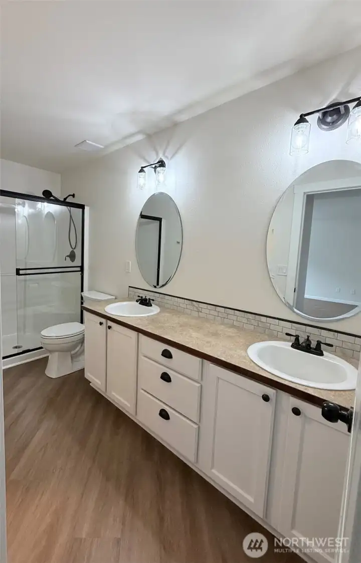 The attention to detail is phenomenal in this better than new 4 bed, 2 bath rambler! Step inside & be met with vaulted ceilings, stunning archways and trim work throughout, newer diagonally installed LVP flooring & chilling A/C! Great flow with open concept layout centralizing the kitchen-- revealing newly painted cabinets, gas stove & breakfast bar! Pass through gorgeous french doors into the oversized primary bedroom featuring eye-catching recessed ceiling, large walk-in closet & tons of natural light! Soak up summer evenings in your fully fenced backyard paradise boasting manicured landscaping and raised garden beds. Conveniently located on a quiet cul-de-sac near shopping, schools, restaurants & JBLM!