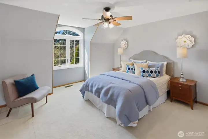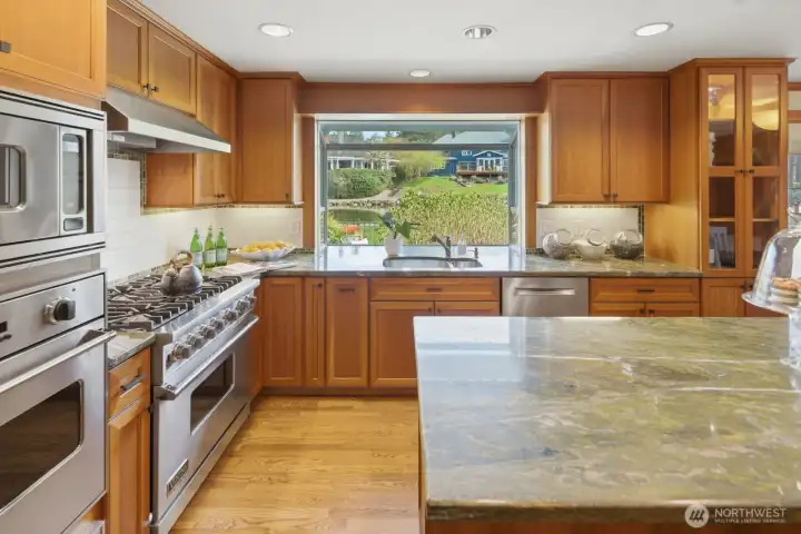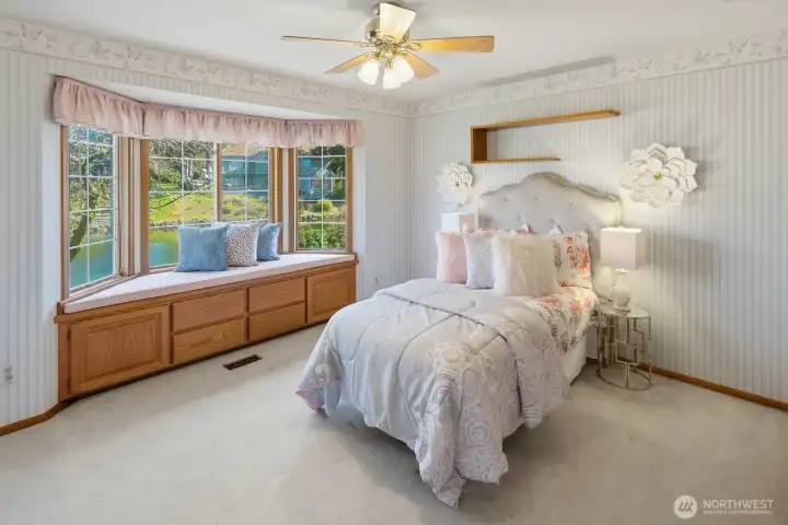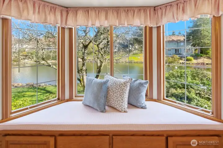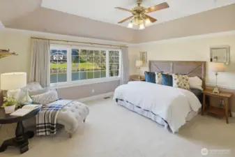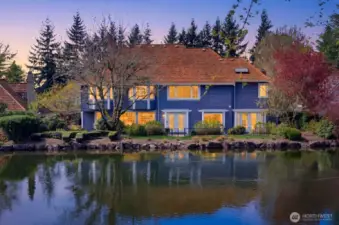 Welcome to this charming, traditional 4-bedroom waterfront retreat in The Lakes, where classic style meets effortless living. Designed for both lively gatherings and quiet moments, the home offers a bright, flowing layout with generous living spaces that feel as inviting as they are functional. The upgraded kitchen serves as the heart of the home, seamlessly connected to the dining room and family room and all have the tranquil lake as a private backdrop. Entertain in a formal living room or when summer beckons, retreat to the lovely slate patio and gated yard next to the lake. The main floor also offers the convenience of a large home office. Upstairs, four spacious bedrooms provide comfort, flexibility and peaceful views. A large bonus room above the garage, and an additional flex space with a sizable closet, offer endless possibilities ~perhaps a 2nd office, craft space or library. Abundant storage throughout keeps everything beautifully organized. Perfectly positioned on a tranquil lake, this residence enjoys a serene sense of privacy within one of the island's most sought-after enclaves, all while conveniently close to shopping, dining, playfields, parks, Islander Middle School, and Lakeridge Elementary School.