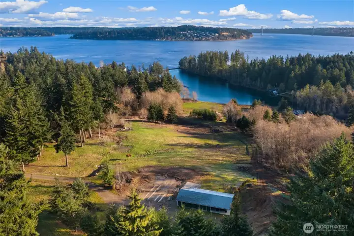 Presenting a rare waterfront property spanning just over 19 acres with approximately 130 ft. of low bank shoreline. Spectacular views of Gig Harbor and the Tacoma Narrows Bridge. The setting includes open space and a tree lined perimeter providing privacy. Zoned R-10 and located adjacent to the Fox Island Yacht Club with convenient access to downtown Gig Harbor. Approved builder plans for a custom 6000+ sq. ft. residence w/pool and outbuildings are in place including building permits renewed through June 2027. Septic has been dug, with permits in process for renewal across multiple locations. A feasibility report has been completed. Initial work toward a short plat to create three total parcels has been started; buyers may continue the process subject to applicable requirements and approvals. Water management improvements direct runoff to a reserve pond and toward the shoreline. Two access points serve the main parcel and potential additional parcels. The property offers flexibility for residential development, with space for gardens, recreational features and existing fruit trees. Additional information regarding plans, utilities, and development status available upon request. Buyers are encouraged to verify all plans, approvals, and feasibility. By appointment only.