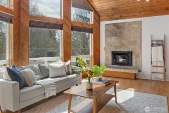 Tucked behind a gated entry on 5 serene acres, this custom cedar home offers privacy, space, & breathtaking Mt. Rainier views. The 2,526 sq ft rambler-style floorplan w/ loft features 3 bedrooms and 3 bathrooms, thoughtfully designed with separate wings for comfortable living.The stunning A-frame living space is the heart of the home, showcasing soaring tongue-and-groove ceilings, expansive windows that flood the room with natural light, & solid hardwood floors throughout. The traditional kitchen features beautiful woodwork, a dedicated eating area, and opens seamlessly to the living space, while a separate dining room & additional living room provide flexibility for entertaining. One wing of the home is dedicated to a spacious primary suite w/ private ensuite bath, soaking tub, & large sauna. The opposite wing offers 2 additional bedrooms, 2 bathrooms, & an oversized mudroom/utility space. With its layout & separate entry, this side of the home could easily be converted into a multi-generational or ADU setup. Step outside to enjoy panoramic views from the back patio, native landscaping, storage sheds, covered parking, & plenty of room to entertain or explore the acreage. Wildlife sightings & peaceful mornings are part of everyday life here. Additional features include a gated roundabout driveway, fenced yard, new roof, and heat pump with A/C. Endless possibilities await in this private PNW retreat.