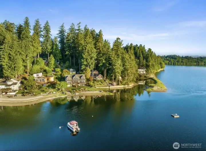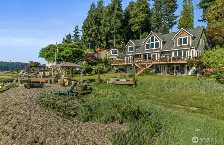 Experience the ultimate waterfront lifestyle on Eld Inlet at Flapjack Point in the desirable Griffin School District and Steamboat Island Community. This rare no-bank property offers 180-degree views from one of Thurston County’s finest beaches, creating a true everyday retreat. This one-owner home features a traditional yet versatile floorplan with vaulted ceilings, large picture windows, and a spacious gourmet kitchen ideal for entertaining. Two primary suites, each with full baths and walk-in closets, plus multiple flexible spaces for an office, gym, studio, arts and crafts, or guest use. This home adapts to your lifestyle. New carpet & pad throughout the main home & efficiency studio above the detached shop, and fresh interior paint. The daylight basement includes a full kitchen, 3/4 bath, and additional living quarters. Enjoy mature, vibrant & colorful landscaping, a covered gazebo at the water’s edge, and endless opportunities to relax or host gatherings. A private boat launch, moorage buoy, with included tideland, complete this exceptional setting. Additional highlights include an attached 2-car garage, basement utility garage, detached 3-car shop, and a fully functional 1,000± sq ft studio apartment—perfect for guests or extended living. A rare opportunity to own a one-of-a-kind Pacific Northwest waterfront retreat. Come take a look and make your dreams become a reality.