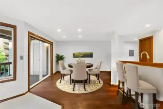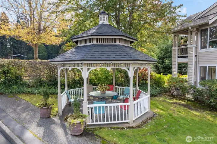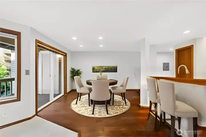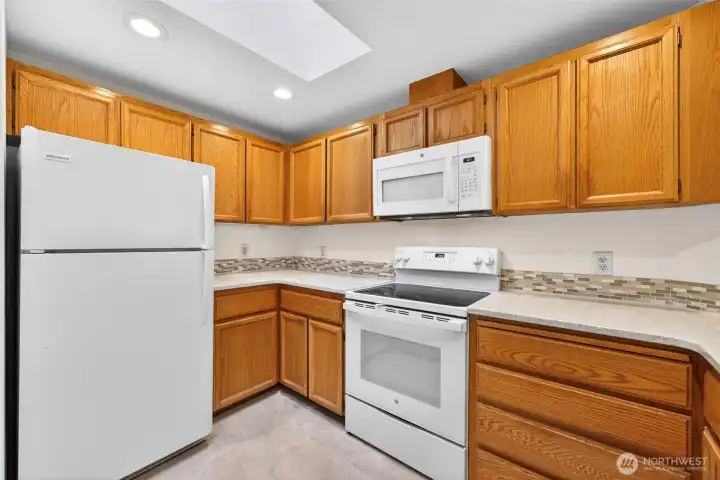 Set just blocks from all the fantastic restaurants, cafes, boutiques & events in downtown Edmonds, this bright & open top floor unit is your chance to live the coveted Edmonds lifestyle! Fantastic natural light pours in through abundant windows looking out to treed views & your picturesque community nestled right next to Edmonds City Park. Life & light flow easily through the open layout, accentuated by hardwood floors & a cozy wood-burning fireplace. The roomy kitchen offers space for multiple chefs + bar seating, a pantry & ample storage. The primary bedroom is large enough for a king-sized bed & boasts dual closets + a full ensuite bath. Second bedroom is great as a home office or guest room! Sip morning coffee on your private deck while taking in the sea breeze & singing birds nearby. In-unit laundry, a private 1-car garage & off-deck storage make this a smart investment. Freshly painted w/new flooring & carpet. A south-facing skylight floods the kitchen with light that sparkles on quartz counters with mosaic tile backsplashes. Fantastic community w/ well-run HOA, cute community gazebo & greenspace w indoor meeting space, & no rental cap. Walking distance to waterfront parks, the ferry, dozens of restaurants, local shops, the Farmers Market, buses & more. Welcome to effortless Edmonds living! The condo comes with a 285 sq ft private garage: big enough for a full-sized car or small boat or camper plus bikes, kayaks, skis, and off-season items or a workshop.
