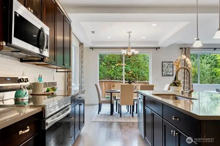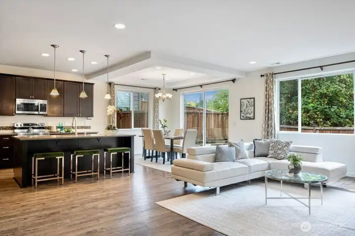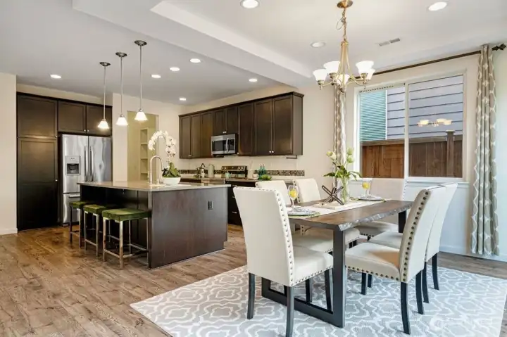 Well maintained 3 bedrooms +Den+ loft +2.5 bath home! Large covered front porch, laminate wood flooring, slab granite counters, Whirpool gold appliance w/gas range, 42 inch upper cabinets and 9ft ceilings on main. Master suite with huge walk-in closet and 5 piece master bath w/ marble counters, large laundry room, 2 big bedrooms, 2nd bath w/marble counters and cozy loft. Air condition. Home was model home in 2015 and included many additional features. New grasses of front and back yard. Walking distance to Green River college.