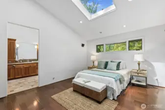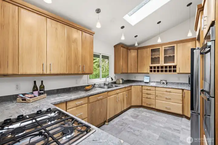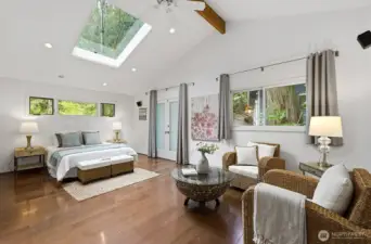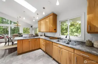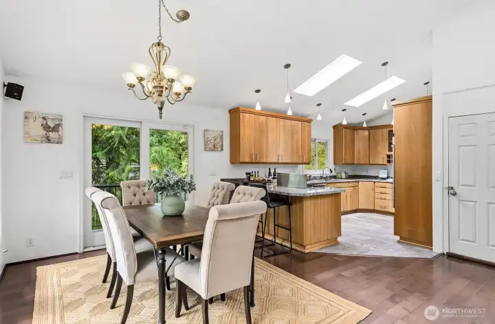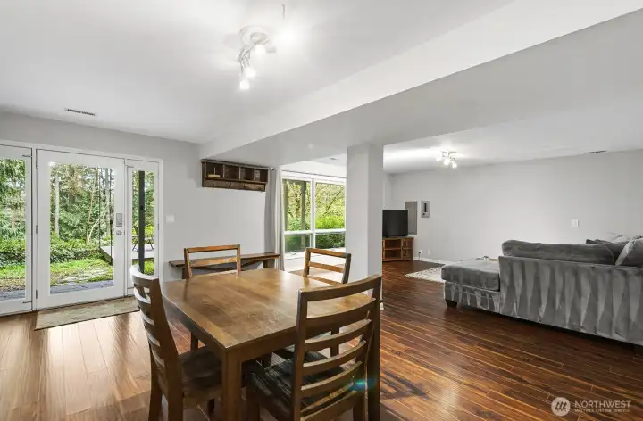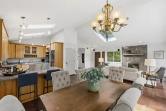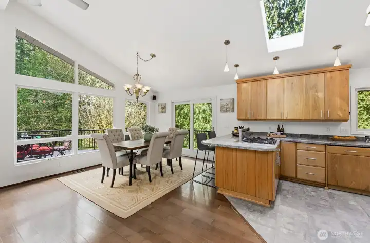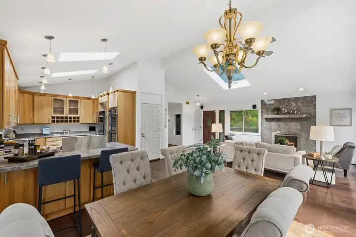 Perched above Ames Lake, this beautifully updated home offers a light-filled great room with floor-to-ceiling windows and seamless indoor/outdoor flow, along with a partial view of the lake. The kitchen features many recently updated appliances. Shift over to the dining room off the kitchen and enjoy the view as you eat your meal. The oversized primary suite includes a stunning bath, walk-in closet and French doors to the deck with a new handrail. The lower level offers 2 bedrooms, a bath, rec room, and great utility space. Use both floors together or use them separately as two different residences. Recent updates include newer appliances, fresh exterior paint and gutters, a 3-year-old water heater, newer roofs (within the past 5 years). Three-car garage with finished third bay/office. Lives like two separate spaces with full kitchens, laundry, and private entrances on both levels. Enjoy Ames Lake community waterfront access with optional membership at just $50/year