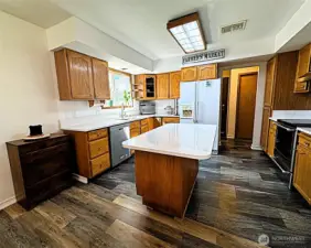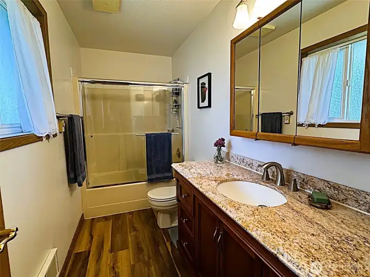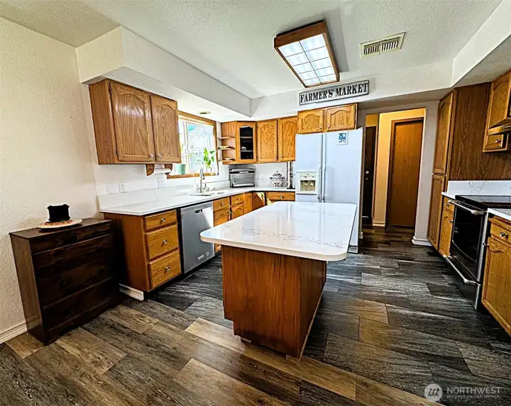 Spacious 2,227 sq ft home featuring 4 bedrooms and 2.25 baths in an established Moses Lake neighborhood. This home offers a functional layout with heated floors throughout the main level (excluding the half bath). The kitchen features granite countertops, oak cabinets, and an island with appliances that stay including dishwasher, stovetop/oven, refrigerator, washer, and dryer. The primary suite includes an attached bathroom and two large closets, providing ample storage and convenience. Additional exterior features include underground sprinklers and a 2-car garage with built-in shelving for added organization. Situated on a 7,991 sq ft lot, the fully fenced backyard features mature landscaping, an open patio, raised garden beds, and a 10x16 outbuilding (power ready), offering space for outdoor enjoyment, gardening, and storage. Conveniently located near Samaritan Hospital, close to schools, and local amenities. Seller offering an American Home Shield home warranty for added peace of mind.