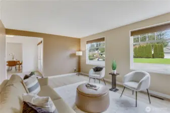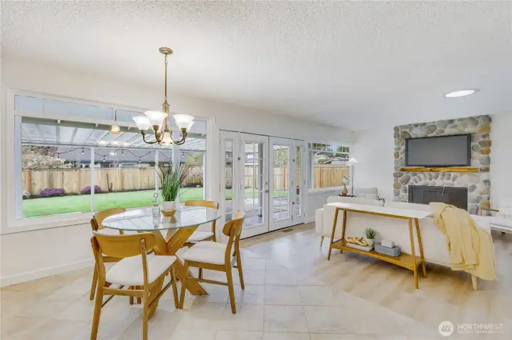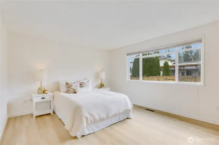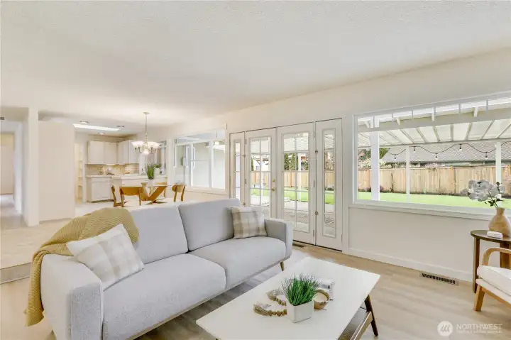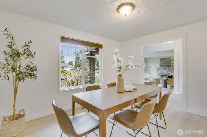 Golf course neighborhood anyone? This light-filled one story home in the highly desirable Fairwood Greens neighborhood of Renton is where you can enjoy quick strolls to private parks with playground, pickleball and basketball courts, and well manicured green spaces. Tucked away from the main street is this recently refreshed home offered by long time home owner. Covered front patio leads to the double entry doors. The wood-burning fireplace and large windows fill the spacious living room with an abundance of natural light. Separate dining room is the perfect setting for dinner parties or home office. The kitchen and eating nook flows seamlessly into the 2nd gathering space meant for casual nights cozied next to the gas fireplace. The bedroom wing has 3 bedrooms including a spacious primary with ensuite bath + double closets. French doors in the everyday space opens to a generous covered patio - ideal for year-round entertaining + indoor-outdoor living. Raised garden beds & handy garden shed in the level + fully fenced backyard. Recent updates include durable laminate vinyl plank wood look flooring & interior/exterior paint with painted millwork. Architectural composition roof, central AC, electrical panel, & wired for generator are just a few upgrades throughout the years. Attached two car garage with safe interior access. Minutes to Fairwood Golf & Country Club with 18-hole golf course and swim pool. Quick access to nearby Fairwood amenities for shopping, dining, & services.