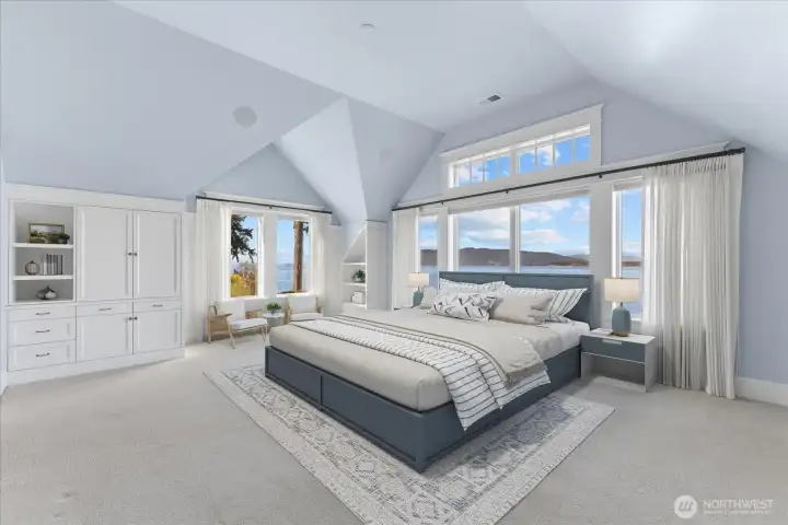 Experience the best of Pacific Northwest living in this stunning home in Bellingham. Perfectly positioned to capture breathtaking, ever-changing views of Bellingham Bay, the San Juan Islands, and both Olympic and Canadian mountain ranges, this home offers a rare blend of tranquility and convenience. Soak in the spectacular, sweeping water views while enjoying coffee on your private deck as eagles soar and boats pass by. Designed for both comfort and entertaining, this home features ample light-filled living spaces, expansive windows, and seamless indoor-outdoor flow. The open concept layout highlights views from nearly every room, thoughtful finishes create a warm, inviting atmosphere. Features include a custom wine cellar, gourmet chef's kitchen with slab granite counters generous island with built in wine cooler, and Viking appliances. Beautiful built-ins and ample storage lend both functional and aesthetic luxury. Thoughtful layout of four bedrooms and 4.5 baths, closet and storage space abound. Unparalleled finishes and design by a custom builder. Step outside to your own slice of paradise! Whether you are hosting guests or enjoying a quiet evening, this property offers a lifestyle that defines opulence with serenity. Located just minutes from downtown Bellingham, you'll enjoy easy access to charming shops, restaurants, and outdoor recreation, all while savoring the privacy of waterfront living. A rare opportunity to own a truly special piece of the Pacific Northwest.