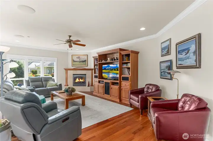 Welcome to this exceptional custom home located on the 17th Green of private Indian Summer Golf & Country Club community, boasting scenic views of the golf course and nature preserve. Situated on a 1/3-acre lot with 3,437 square feet of living space, this home features newly refinished hardwood floors in the library, dining room, and living room, complemented by a striking wrought iron staircase. The gourmet kitchen offers golf course views, premium appliances, a Butler’s Pantry, wine cooler, granite and quartz countertops, and a walk-in pantry. The covered patio includes a stone water feature and professionally designed landscaping. The main floor provides a spacious primary suite, formal dining room, large den, marble-accented powder room, and library. Upstairs are two additional bedrooms and a loft TV area. Modern amenities such as integrated sound and security systems, central vacuum, a Kohler standby natural gas generator, extensive trim, and an oversized three-car garage complete this refined and comfortable residence.
