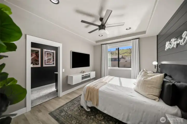 A standout home in the Swift Springs development, thoughtfully designed with elevated finishes and a custom feel throughout. This extensively upgraded smart home offers a rare blend of style, function, and elevated living. The open-concept layout centers around a quartz waterfall island, gas cooktop, double ovens, and beautifully integrated built-ins. Smart home technology is seamlessly integrated throughout, enhancing comfort, lighting, security, and everyday ease. A dedicated office with custom bar and flexible bonus/game room add versatility. The primary suite is a true retreat, featuring a fireplace, spa-inspired bath, and a stunning pass-through shower designed for a luxury experience. Outdoor living is equally refined with professional landscaping, turf, patio and a hot tub. Complete with a 3-car garage, dog wash station, and access to nearby schools, trails, and the canal—this home is anything but expected.