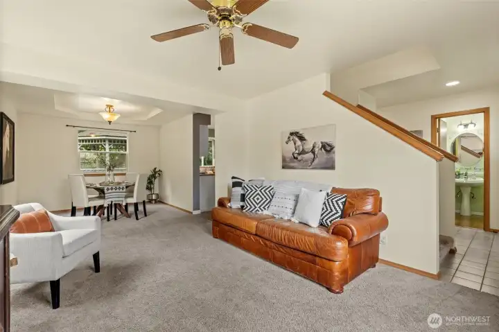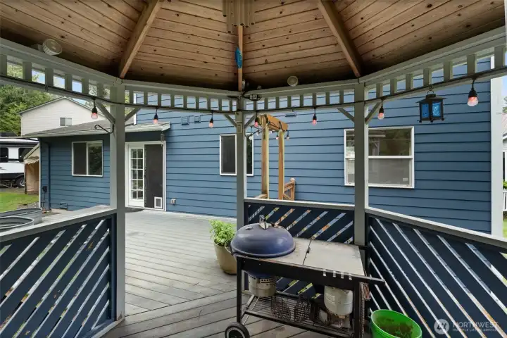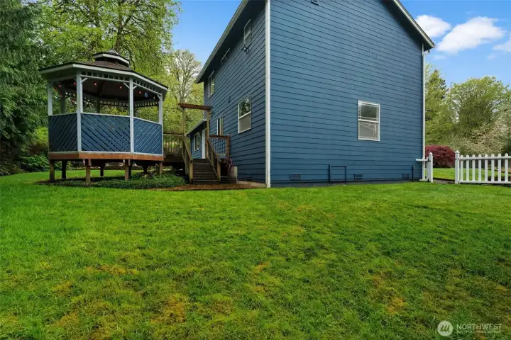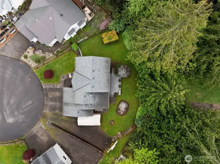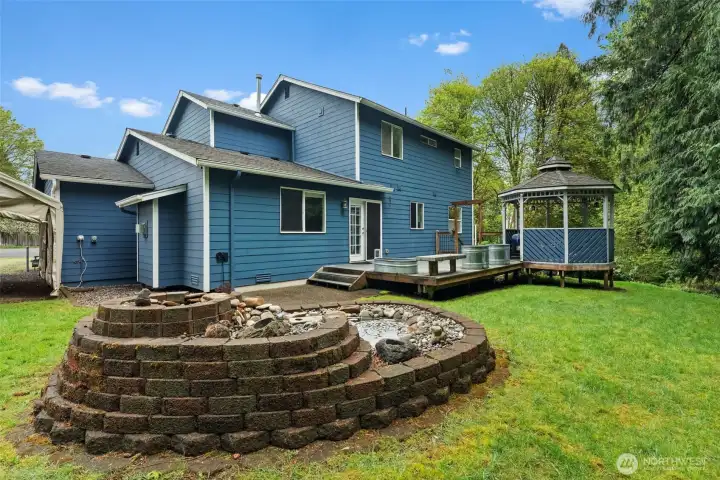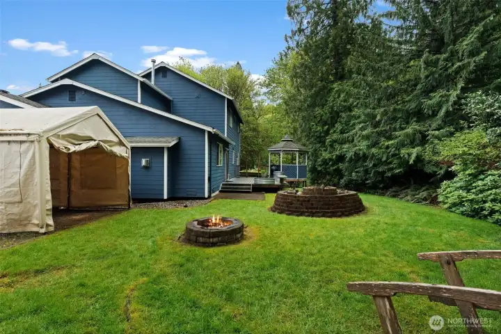 Tucked into the desirable Canyon Estates neighborhood on a quiet cul-de-sac in Bremerton, this refreshed 4-bedroom home blends comfort, function, and inviting outdoor living. Step onto the welcoming front porch and into a bright interior with a circular floor plan designed for everyday ease and effortless entertaining. The updated kitchen showcases granite countertops and a large island—perfect for prep, dining, and gathering—and opens to a spacious deck, creating seamless indoor-outdoor flow for hosting and relaxing. The adjoining family room leads directly to a beautiful backyard retreat, thoughtfully designed for enjoyment. Upstairs, all four bedrooms provide privacy and flexibility, including a spacious primary suite with a generous walk-in closet. The additional bedrooms offer room to grow, work, or play—tailored to fit your lifestyle. Out back, the yard is ready to impress with a soothing water feature, cozy fire pit, and a large gazebo perfect for summer BBQs. RV parking adds extra convenience with power hook up, while a newer roof offers peace of mind. All of this in a sought-after location close to local amenities, bases, ferries, and everything Bremerton has to offer!