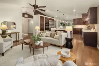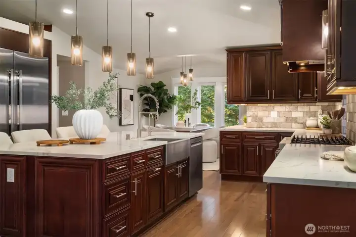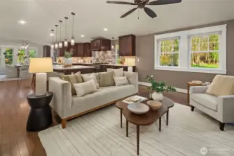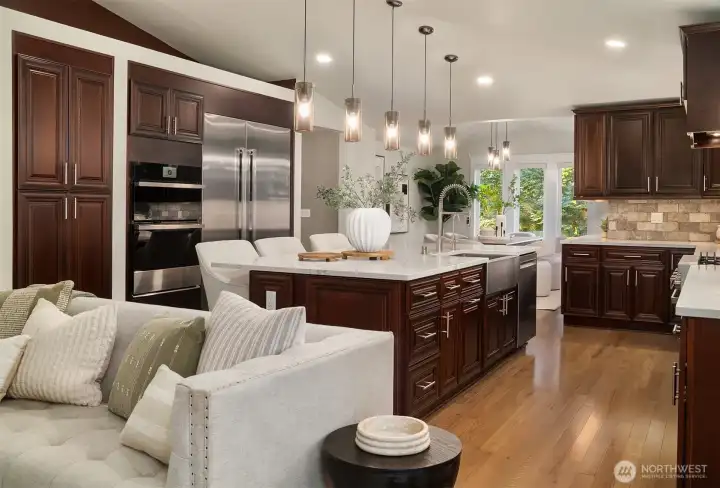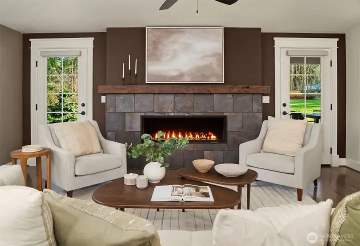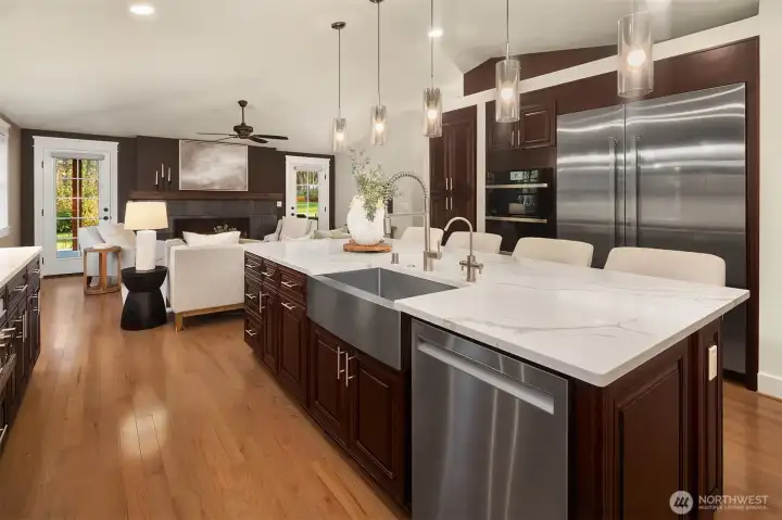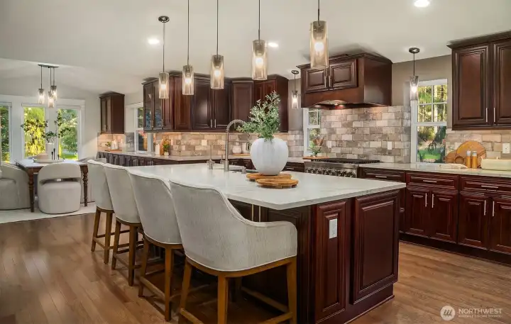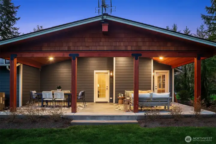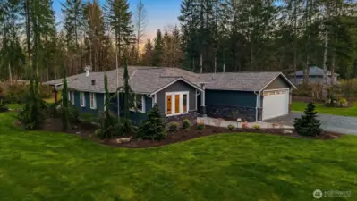 Fully remodeled rambler set on just shy of 5 private, park-like acres in Lake Stevens. This home features an open-concept layout with a stunning custom kitchen, complete with rich cabinetry, quartz countertops, a massive island with seating, a full suite of high-end stainless appliances, and designer lighting. The kitchen flows seamlessly into the living area with a statement fireplace and large windows bringing in natural light and views of the surrounding property. The primary suite offers a spa-like bathroom with a beautifully tiled walk-in shower and an oversized walk-in closet outfitted with custom shelving. Thoughtful updates and quality finishes carry throughout the home. Enjoy year-round outdoor living under the covered patio, overlooking the peaceful, usable acreage. The property also includes a fully prepped shop site with water and power already run, a 3-foot deep gravel base in place, and its own separate driveway already cut in—saving significant time, planning, and cost. Level, usable land surrounded by mature trees offers privacy, flexibility, and endless potential. Ample parking with space for RVs, toys, and your dream shop. Generator and EV charger already in place, adding convenience and peace of mind. Conveniently located just minutes to downtown Lake Stevens, the Centennial Trail, shopping, restaurants, and commuting routes while still offering a quiet, secluded setting. A rare opportunity to own a truly custom home with room to build, expand, and enjoy!