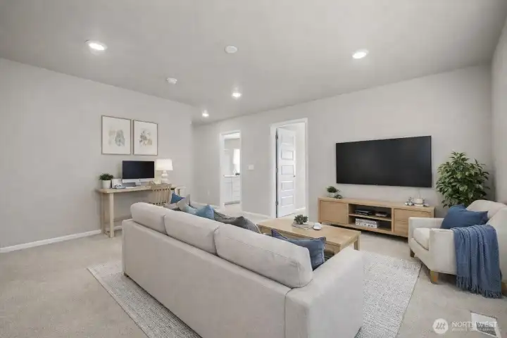 Experience **elevated living** in the **Bailey plan by Lennar** in sought-after Eagle Ridge at Tehaleh. **Blending craftsman design with modern style**, this thoughtfully designed home welcomes you with **soaring ceilings and abundant natural light**, creating an open, inviting space perfect for everyday living and entertaining. The chef’s kitchen features designer cabinetry, quartz countertops, an expansive island, premium stainless steel appliances, a spacious pantry, **top grade fixtures**, a sunlit dining nook, and **striking glass subway tile** backsplash. It flows seamlessly into the cozy **living room**, where a gas fireplace with **elegant tile** adds warmth and charm. A main-level **office room** offers flexibility and can easily convert into a guest bedroom. Upstairs includes a versatile loft, convenient laundry, and spacious bedrooms, including a serene primary suite with a **custom built-in closet** and spa-inspired bath. The basement offers incredible versatility—perfect for entertaining or easily converted into a MIL suite. Enjoy year-round outdoor living on the custom deck with wrap-around screens, outdoor curtains, and overhead heater. The yard features natural grass and a **full front sprinkler system** for easy maintenance. Smart home features, nearby trails, parks, and top-rated schools complete this move-in ready home designed for comfort, convenience, and lasting lifestyle appeal.