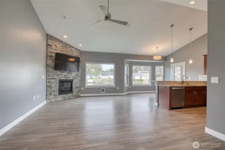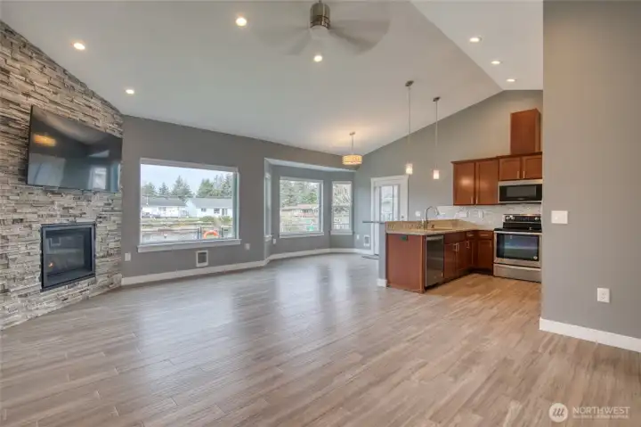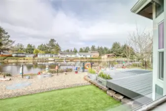 Better than new and meticulously maintained, this move-in ready 3 bedroom, 1.75 bath 1440 SqFt waterfront home offers 60 feet of frontage on the Grand Canal with unobstructed water views. Fully fenced and thoughtfully designed to maximize its setting, the home invites outdoor living with a spacious patio and hot tub- perfect for relaxing or enjoying sunsets by the water. Moor your boats and Kayaks for enjoying the 23 miles of waterways or fish from your own private dock. The open concept layout features a split-bedroom floor plan for added privacy. The primary suite includes an en-suite bath and direct access to the back deck and hot tub. The central living area showcases a bright great room with vaulted ceilings, a gas fireplace with stone surround, and expansive windows that bring in natural light and canal views. The kitchen is a well-appointed for entertaining with quartz slab countertops, stainless steel appliances, and a cozy breakfast nook surrounded by windows. Other notable features are a dedicated laundry room equipped with a utility sink and cabinetry, an expansive two-car garage, electrical hookups for your RV, and a spacious paved driveway providing generous parking capacity. Low-maintenance land scaping allows for easy enjoyment of the property. Equipped with an on-demand water heater and built in vacuum system, this home combines comfort, efficiency, and waterfront living. This home is part of the Ocean Shoes Community Clib