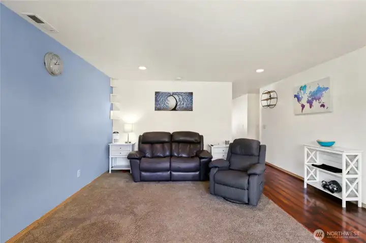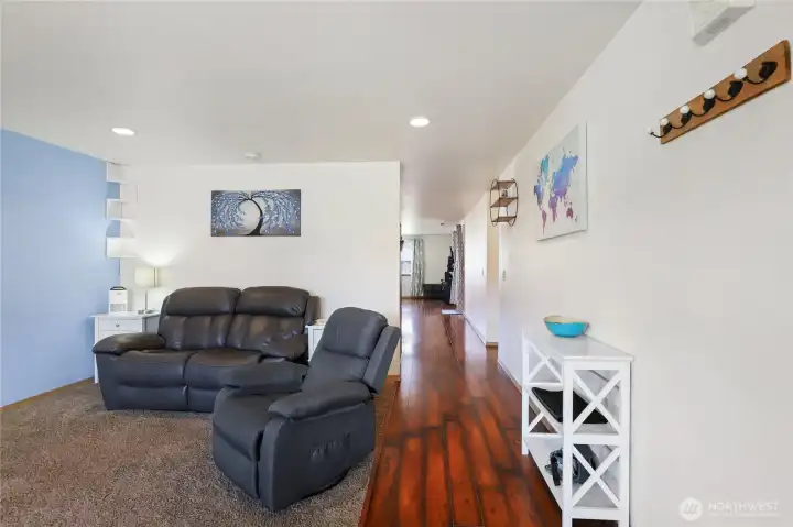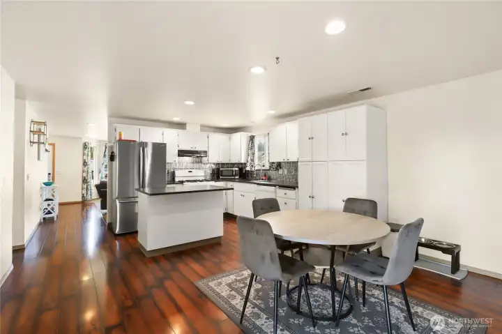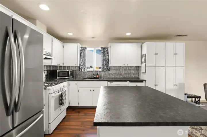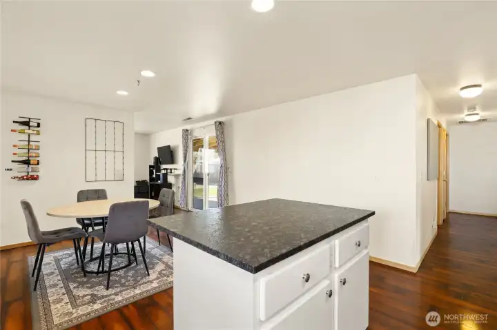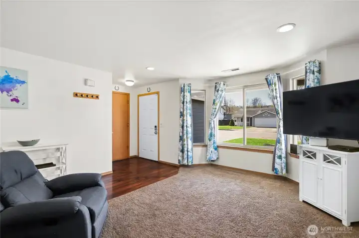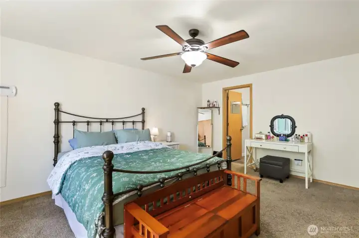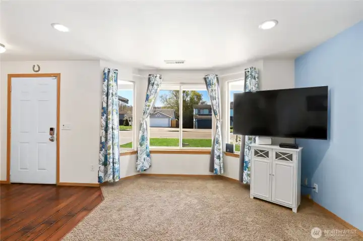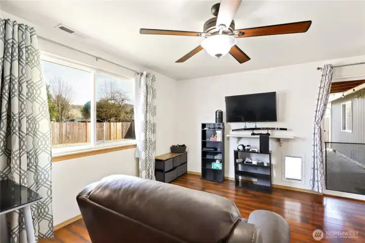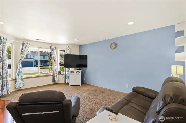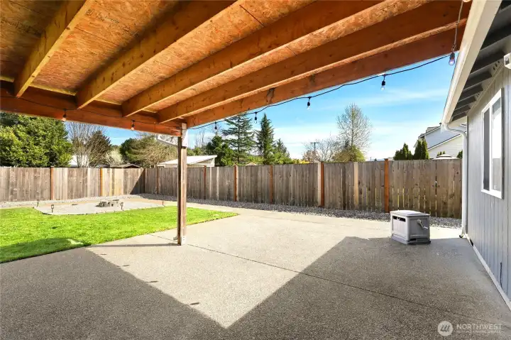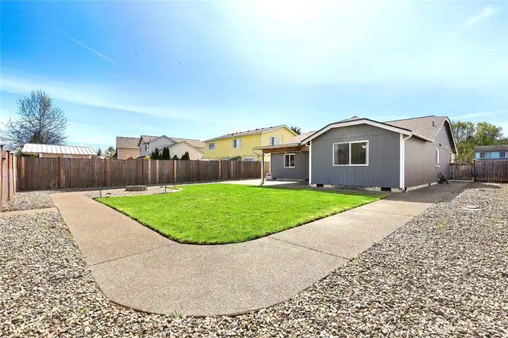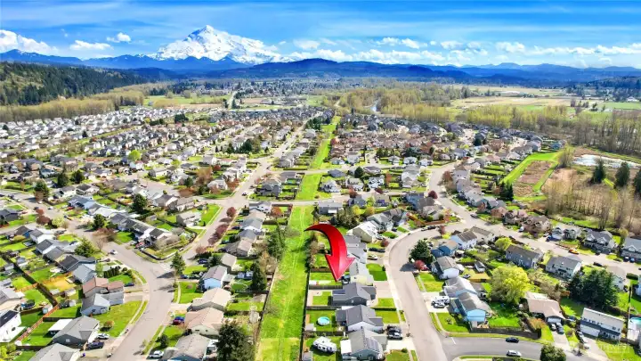 Enjoy the ease and convenience of single-level living in this exceptional rambler! This beautifully maintained home offers comfort, style, and stunning surroundings. Thoughtfully designed with low-maintenance landscaping, the curb appeal is truly exceptional. Inside, you’ll find 3 well-appointed bedrooms and 1.75 newly tiled baths, along with an oversized 2-car garage for added convenience. The cozy living room features a charming bay window that fills the space with natural light, creating a warm and inviting atmosphere. The spacious island kitchen is perfect for gathering and everyday living, complete with engineered hardwoods, carpeted rooms, and the added bonus of all major appliances included. Step outside to an extra-large patio designed for entertaining or relaxing while overlooking the fully fenced backyard. Enjoy ample space for outdoor activities, along with a fantastic campfire area ideal for memorable evenings. To top it all off, take in the breathtaking views of Mt. Rainier from your own property. Conveniently located near a golf course and with no HOA dues, this home blends comfort, functionality, and scenic beauty, ready to welcome its next chapter.