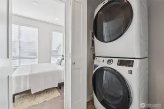 This wonderful light-filled luxury townhome is the first ever resale home in Northmark at Beardslee and has been so well cared for it feels brand new, without the new construction price. Perfectly situated near the UW Bothell campus with seamless access to I-405. The main level welcomes you with an expansive, sun-drenched floor plan featuring a large living room and a dining area designed for effortless entertaining. The expansive kitchen is a gourmet's delight, boasting sleek granite countertops, gorgeous stainless appliances, chef’s gas stove and a spacious "Costco-sized" pantry. Outdoor entertaining is easy with your fully-fenced patio. A thoughtfully placed powder room is tucked away in its own wing for maximum privacy, ensuring it stays well-separated from the kitchen area. Upstairs, you will find three bedrooms conveniently located on the same level, including a primary suite with an en-suite bathroom, 2 more bedrooms and an additional full guest bath. The lower level provides a two-car tandem garage with a massive unfinished flex space at the rear—an ideal canvas for a home office, personal gym, or creative studio. With A/C and ample on-site guest parking, this home offers the perfect blend of modern luxury and functional convenience.