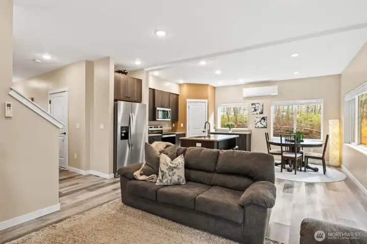 Experience elevated living at The Ridge in Blaine with this beautifully designed corner lot home showcasing premium finishes throughout, and a truly one-of-a-kind setting. This is the only corner lot in the community that backs to the nature reserve while also bordering it on one side, offering exceptional privacy and a serene, natural backdrop. The thoughtfully updated landscaping enhances both curb appeal and outdoor enjoyment.Inside, you’ll find durable LVP flooring, sleek quartz countertops, and soft-close cabinetry that add both style and function. The kitchen stands out with brushed black fixtures, stainless steel appliances, and a generous walk-in pantry perfect for storage and organization.The primary suite offers a peaceful retreat, including a spa-inspired floor-to-ceiling tile shower and a spacious walk-in closet.Enjoy year-round comfort with a mini-split heating and A/C system, along with the warmth of a cozy gas fireplace complemented by custom built-in cabinetry. Blending modern design with everyday livability, this home delivers both comfort and sophistication. This one is priced to sell; don't miss your opportunity! *Seller is offering a $5,000 credit toward a rate buy down or toward closing costs.*