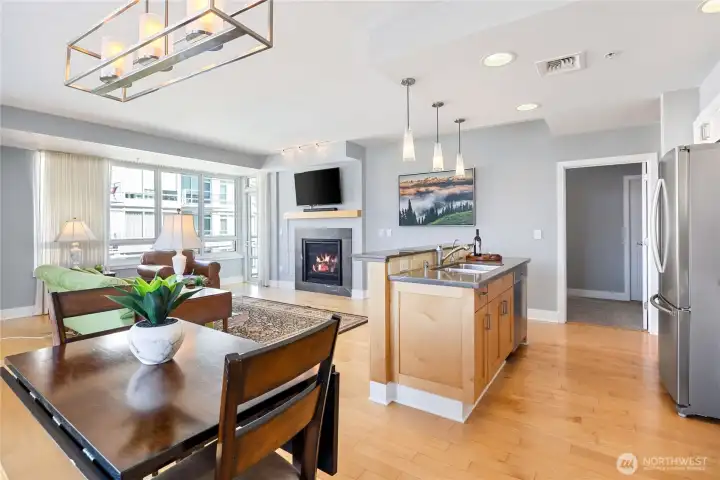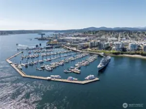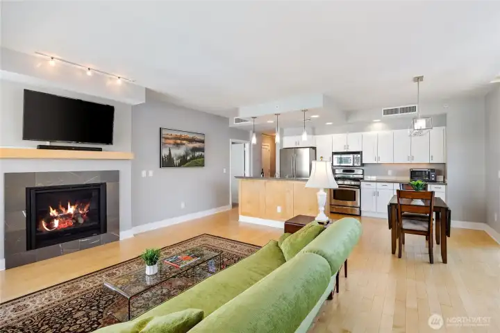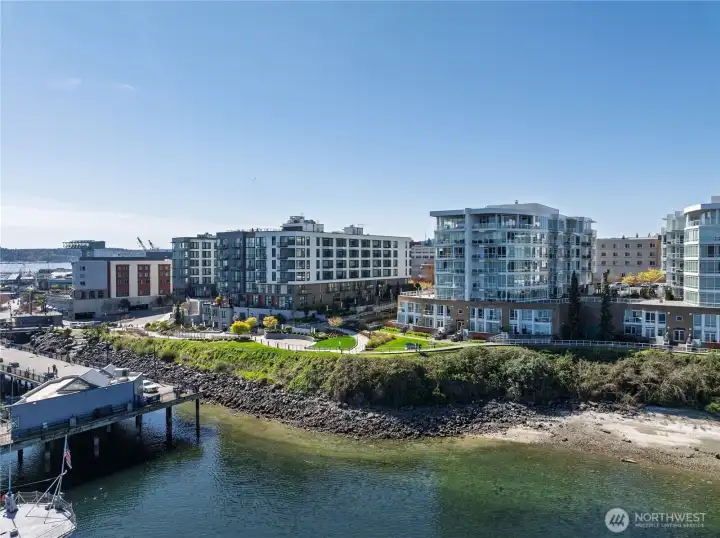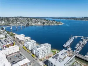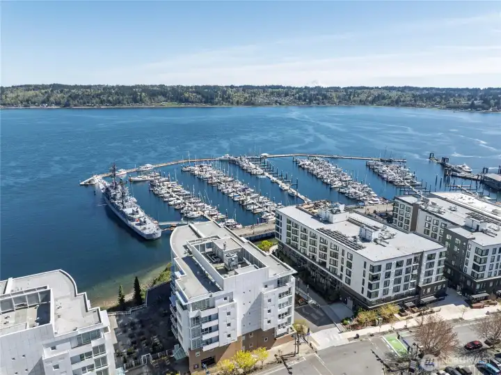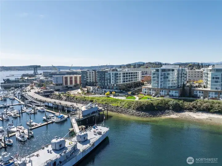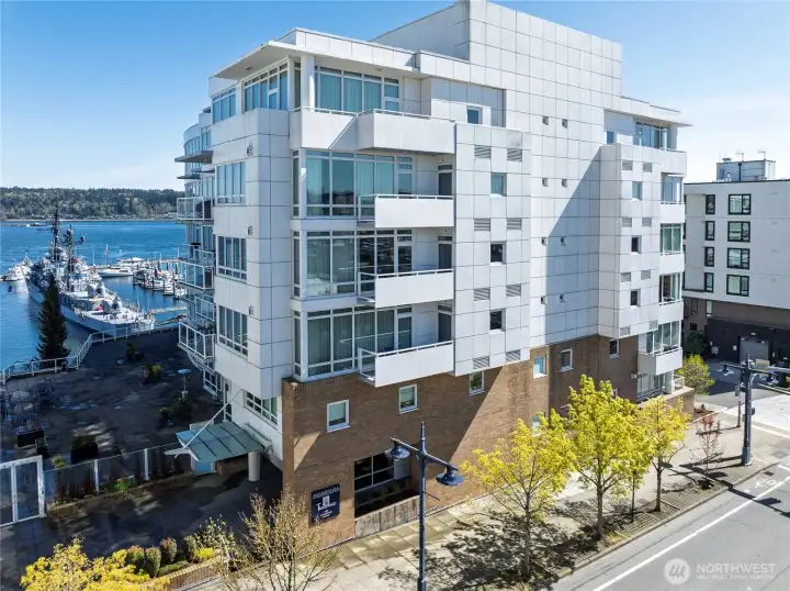 Step into luxury living with this stunning 2 bed, 2 bath condo boasting serene water views and two private decks for your morning coffee and al fresco dining. Perched on the 4th floor, this modern gem features floor-to-ceiling windows, a sleek open kitchen with quartz countertops, and hardwood floors throughout. Plus, cozy up by the fireplace on chilly evenings and soak in the natural light all day long! Not only does this unit come with 2 deeded parking spaces in a secure underground garage and extra storage, but it's also perfectly located just steps away from local eateries, shops, the marina, and the ferry to Seattle! Whether you're commuting to the shipyard, hitting the highway, or popping over to the city, this prime spot offers convenience and style all in one package. Don't miss your chance to call this dreamy condo your new home!