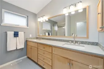 Welcome to Brier’s Crestview Hills, a private cul-de-sac neighborhood in a fantastic location with easy transit options to shopping, restaurants, schools, parks, and job centers. Enter this inviting home to the main floor with vaulted ceilings, hardwood floors, spacious living room with bay window and gas fireplace, dining room with slider access to backyard entertainment deck for convenient al fresco dining, plus large kitchen with eating space. All appliances stay. Lower level is complete with a sprawling family room with additional backyard access, utility room with half bath, and two bedrooms. Washer and dryer stay. The fully-fenced backyard is your own park-like oasis with entertainment deck and patio, mature plantings, and plenty of room to garden and play. Upstairs find the extra-large primary bedroom with vaulted ceiling, ensuite five-piece bathroom with heated floors and soaking tub, plus walk-in closet. Two additional bedrooms upstairs for five total, plus a full guest bathroom. Refreshed interior paint. Two-car attached garage plus two additional sheds for storage. Highly-rated schools.