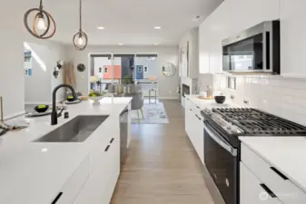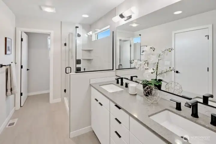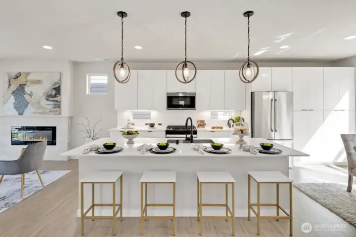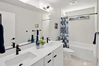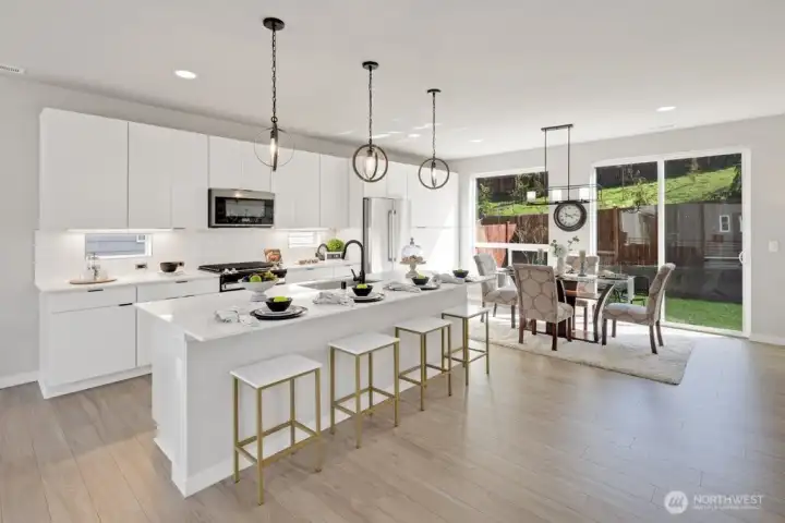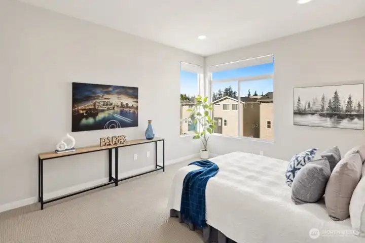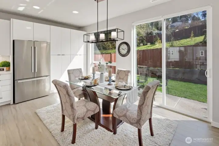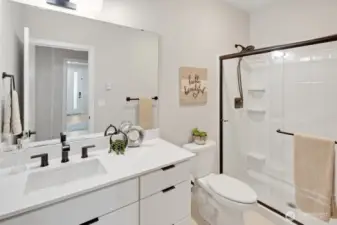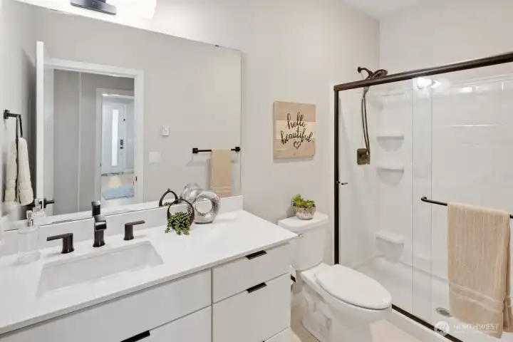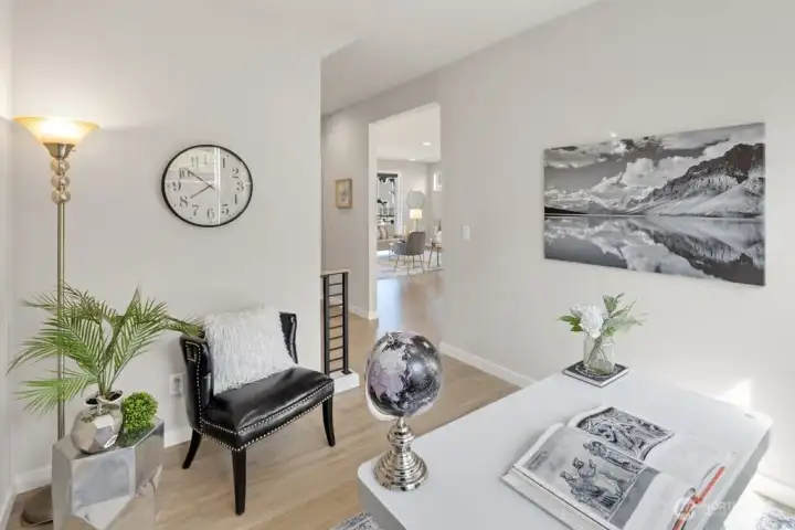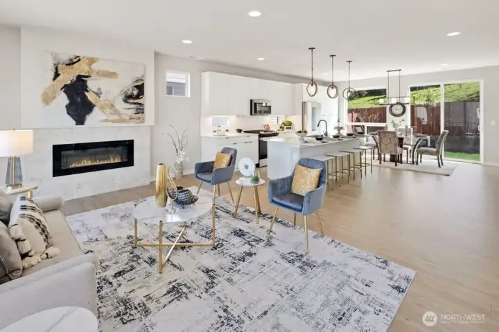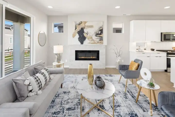 Step inside and immediately feel at ease - this better-than-new 4 bedroom 3.5 bath home offers luxury and tranquility in a quiet community close to I-5 and the light rail. Spread out in multiple outdoor spaces, perfect for entertaining any type of gathering, and always colorful thanks to crisp landscaping and automatic sprinklers. Enjoy a large great room with a sleek electric fireplace, modern kitchen cabinets and white quartz countertops, and durable yet stylish LVP floors. A rare bonus space on the main level is perfect for formal dining, office, or family/game room close to the kitchen! Bask in natural light as you retreat upstairs to your spacious primary suite, complete with tiled shower, water closet and walk-in closet. The upper floor also features second and third bedrooms, laundry, and even a cozy loft space, perfect for a desk, reading nook or Peloton. The lower level adds versatility with an additional large bedroom and full bath, providing flexible space for guests, rec room, or potential ADU/MIL suite. Ample storage, tall ceilings, and a 2 car garage round out the interior. The backyard is fully fenced, and the low HOA dues maintain a pristine community and private park. And if all that isn't enough, enjoy lower electricity costs thanks to a solar panel system. Pre-inspected, freshly painted throughout, and organized. Don't miss this one!